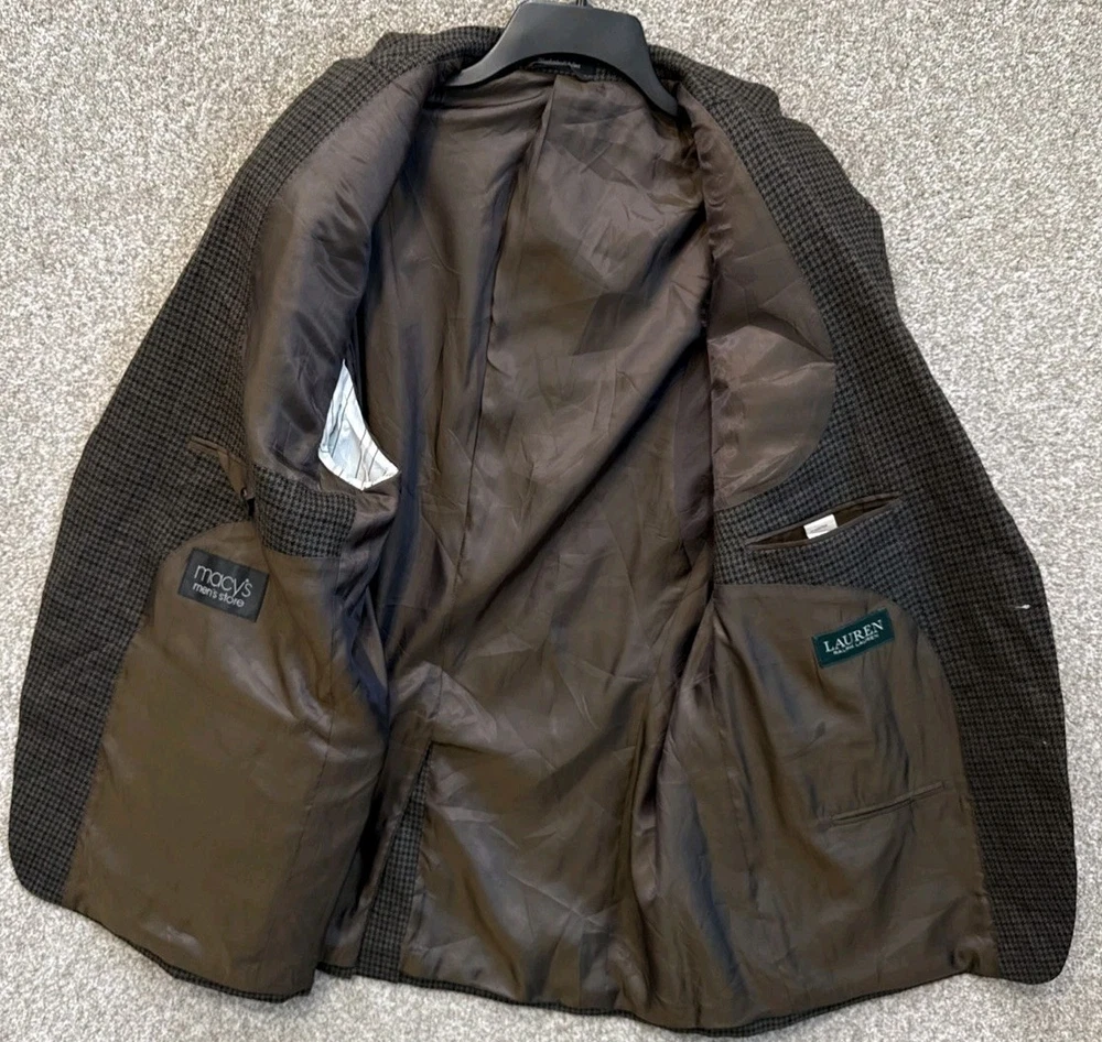 Very good, no holes or stains. Pre-Owned, Ships USPS Ground Advantage. H Lauren Ralph Lauren Mens 48R Brown Houndstooth Wool Sport Coat Blazer Jacket