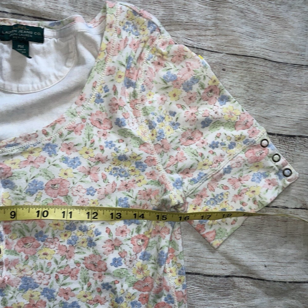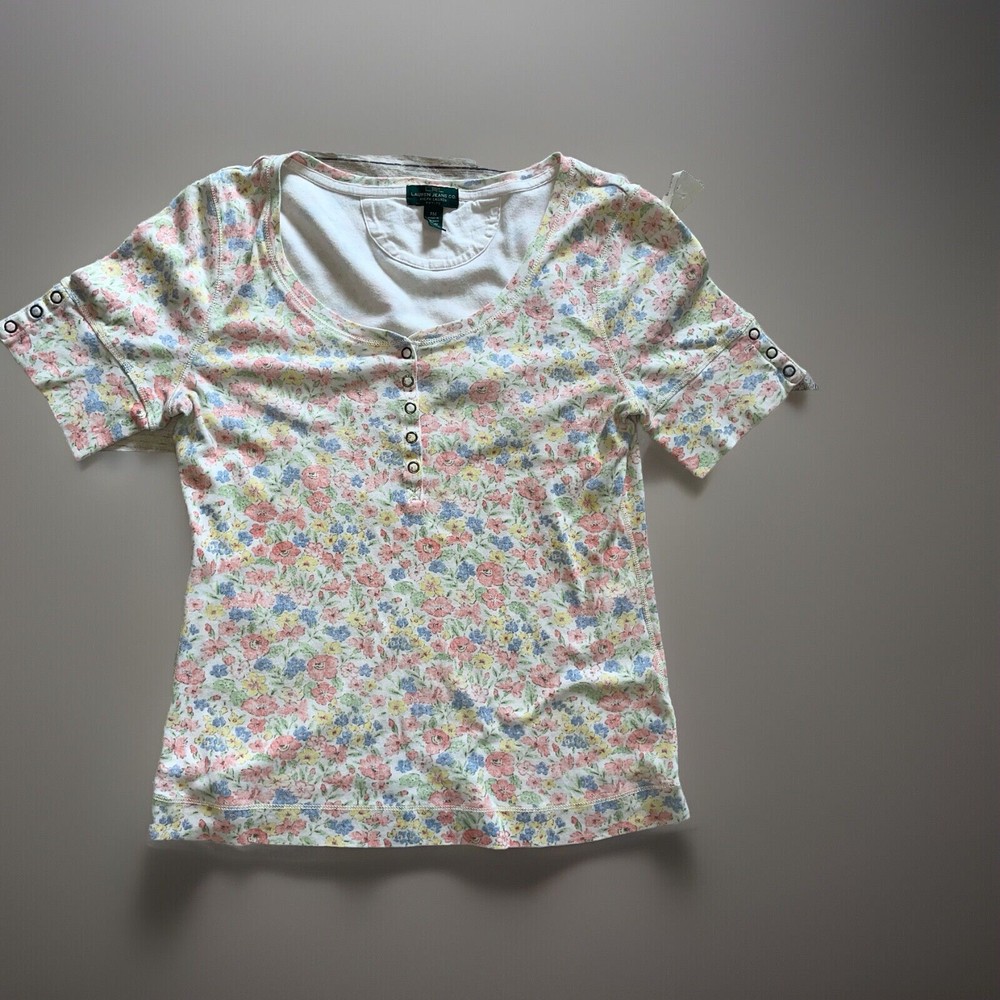 Lauren Ralph Lauren Pastel Floral Henley Tee Petite Medium F1