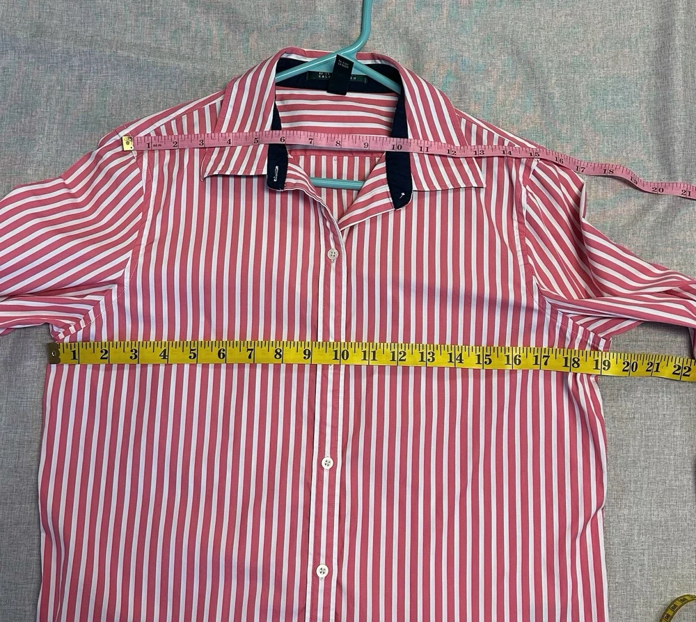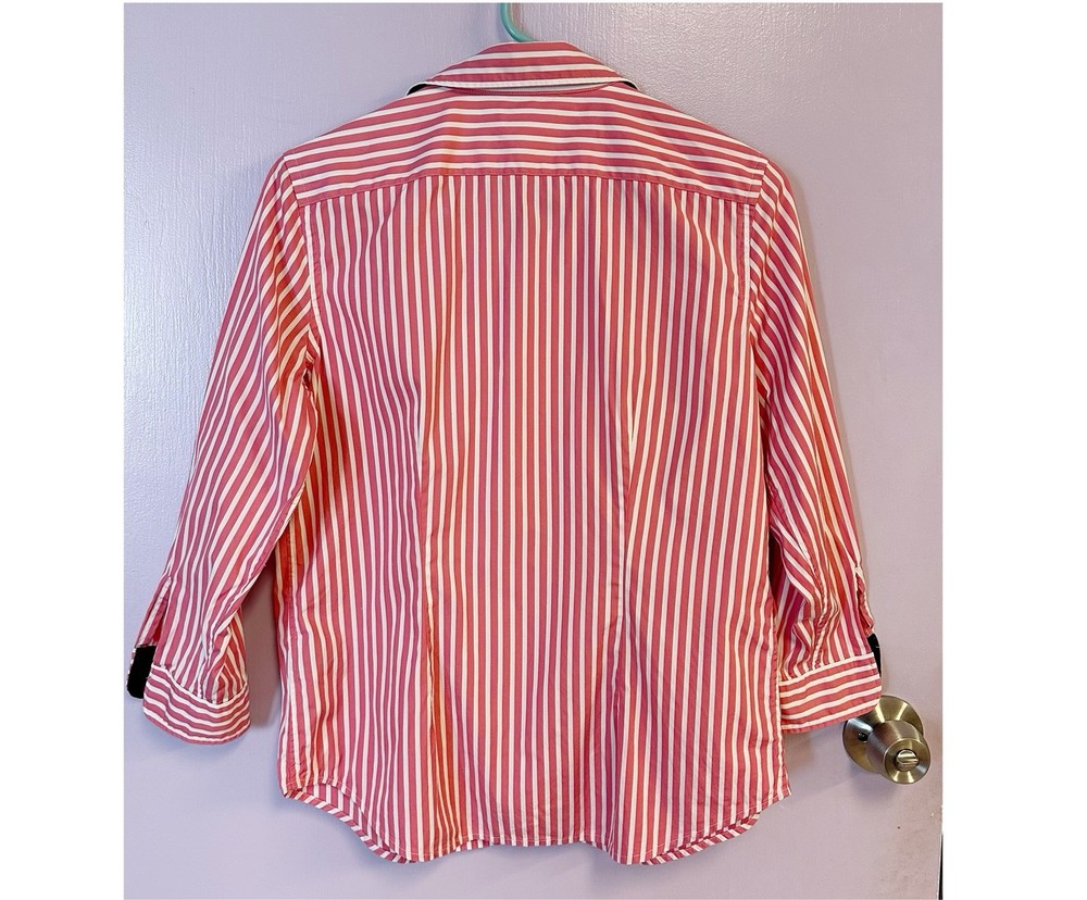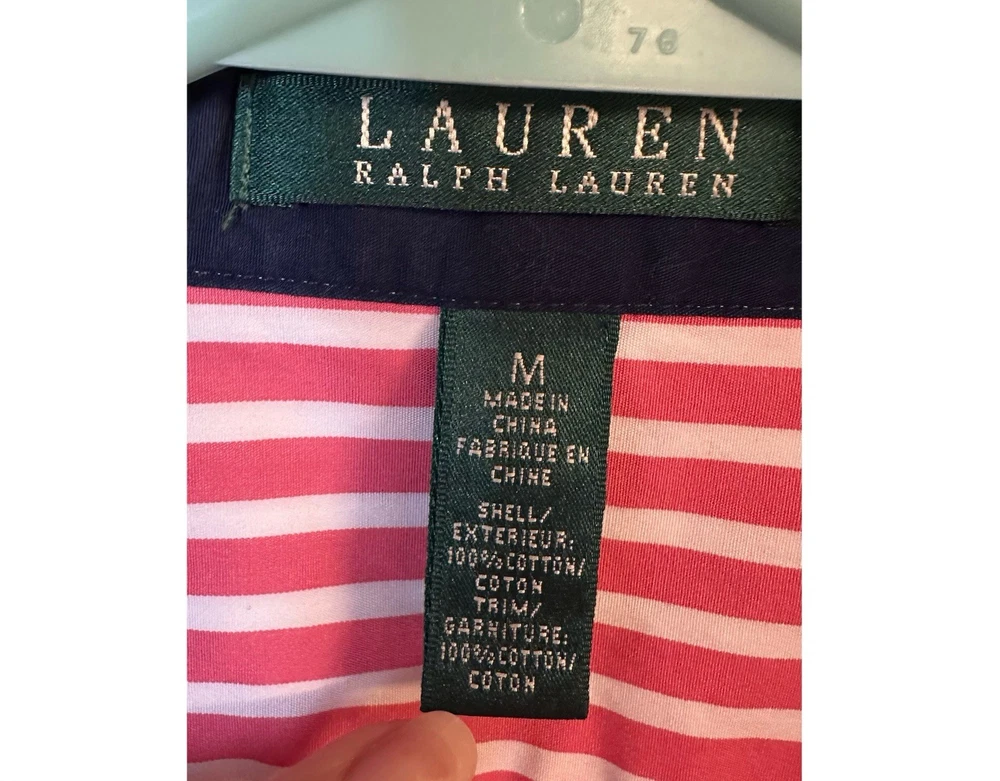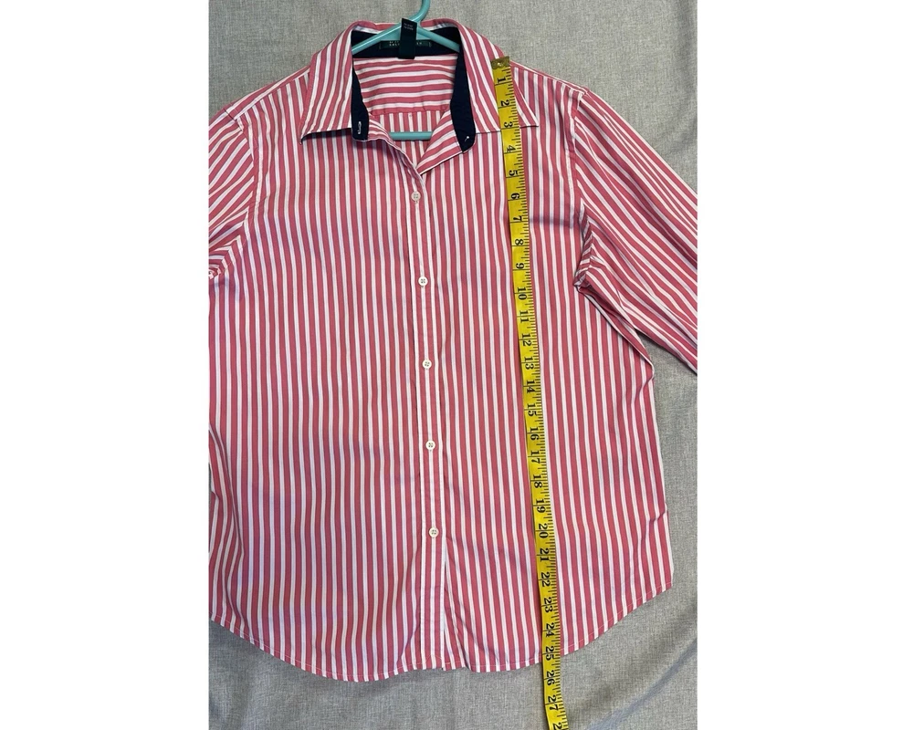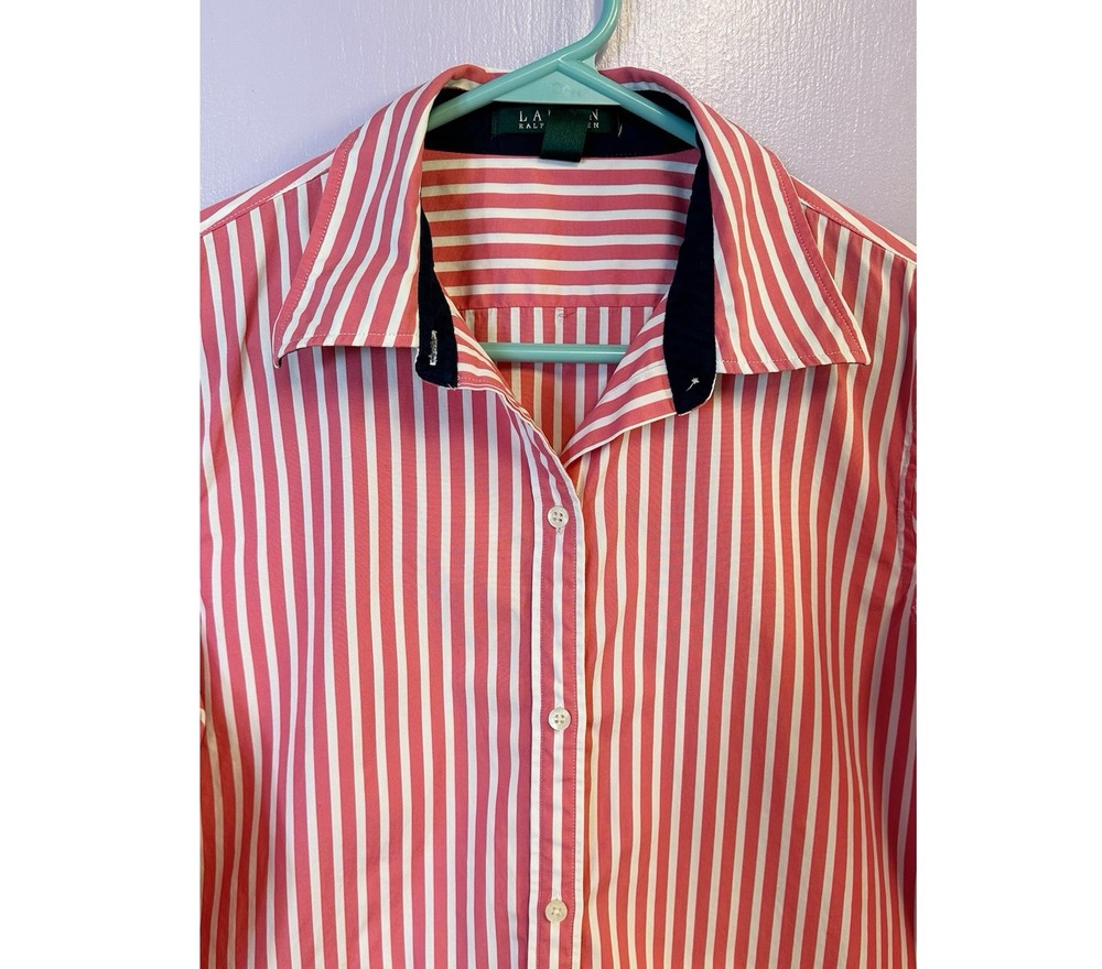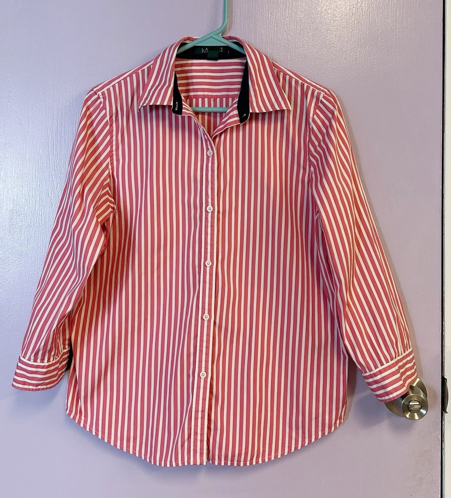 Lauren Ralph Lauren Pink White Striped Button-Down Shirt 100% Cotton Size M