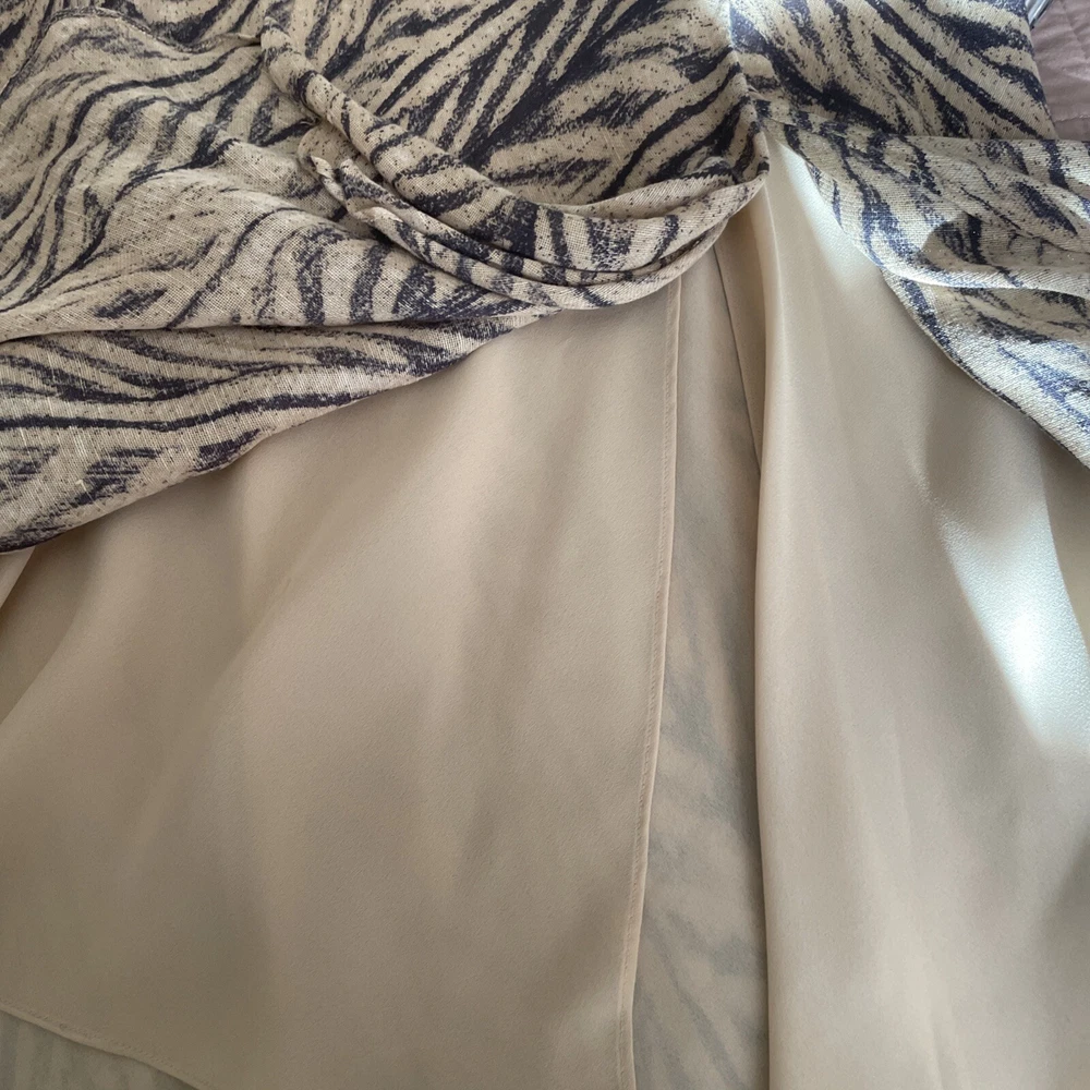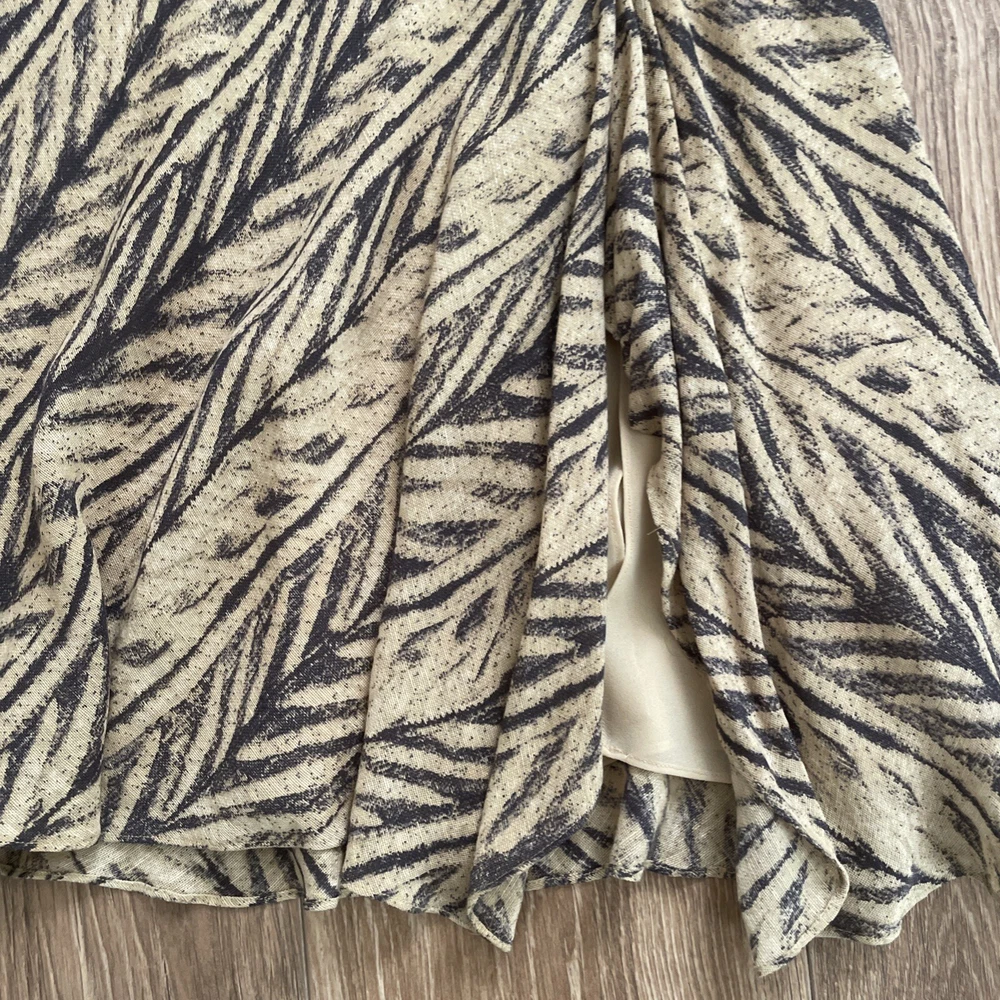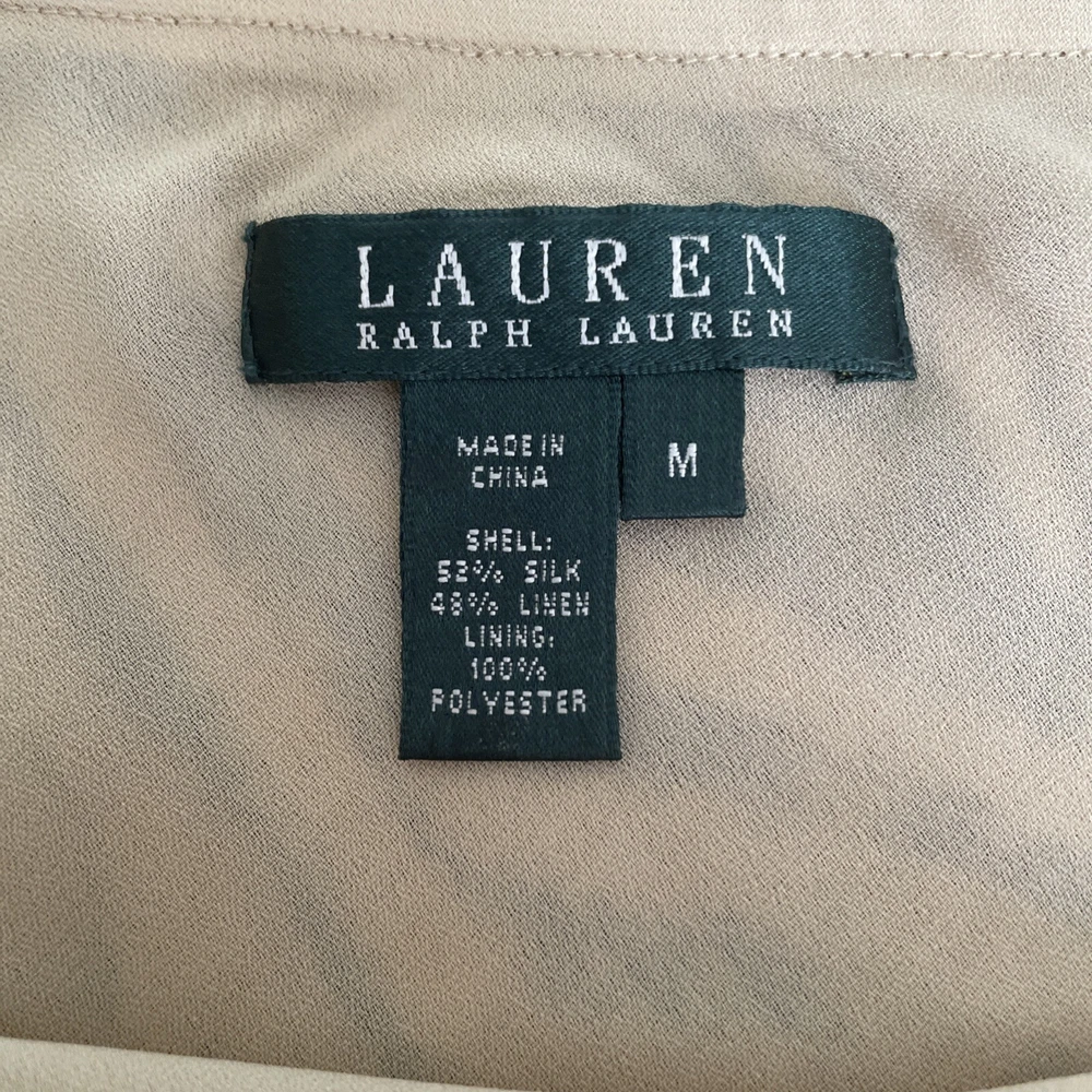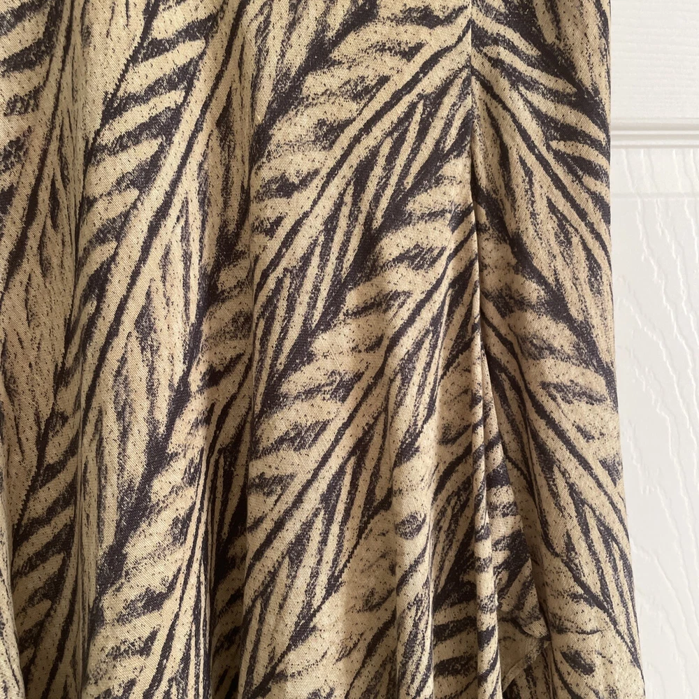 This Lauren Ralph Lauren Midi Skirt features a stylish ruffle flair design in a tan and dark gray color scheme, crafted from a luxurious combination of silk and linen materials. The skirt is in a size M with a pull-on closure and a mid-rise fit, suitable for various occasions such as travel, casual outings, workwear, or business settings. It is fully lined and easy to care. Perfect for all seasons, this skirt exudes a blend of bohemian and city-inspired charm with a hint of southwestern influence. Excellent preowned condition, like new.