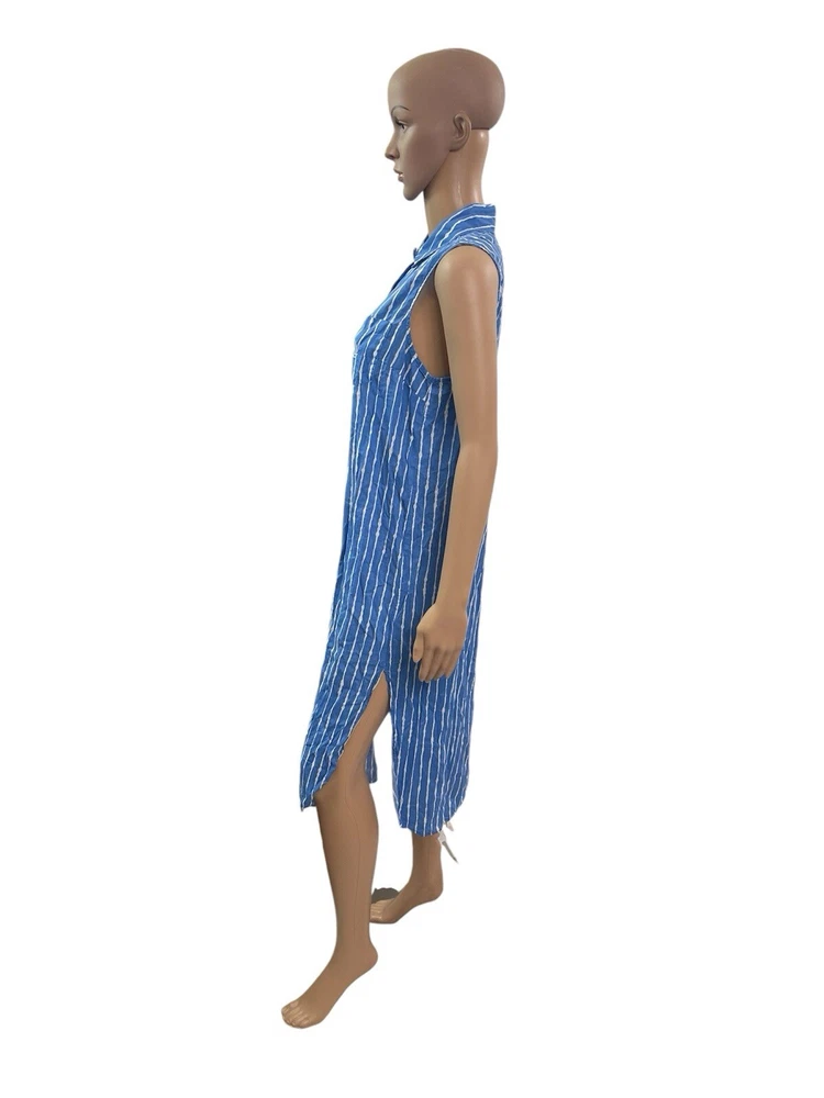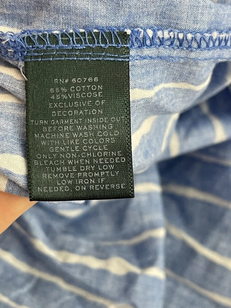 Lauren Ralph Lauren Women’s Size M Sleeveless Blue White Stripe Dress Shirt Armpit to armpit 18” Total length 44” Measurements taken laying down Excellent condition no rips or stains Smoke free pet free home