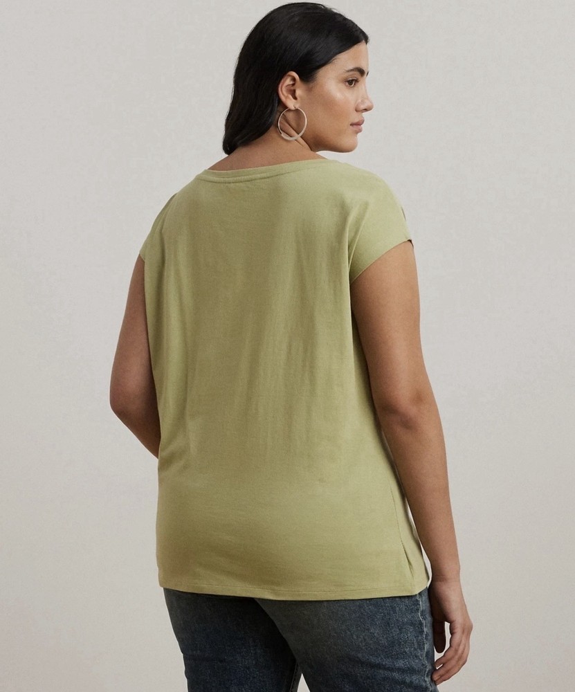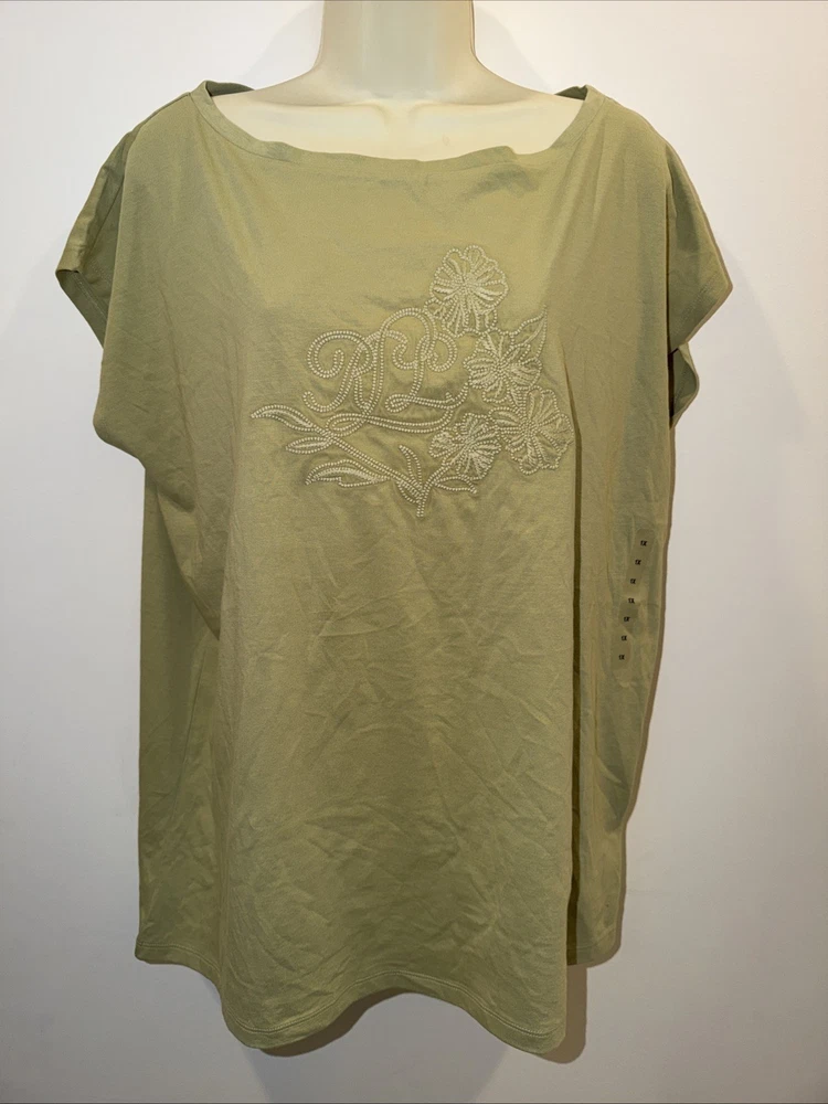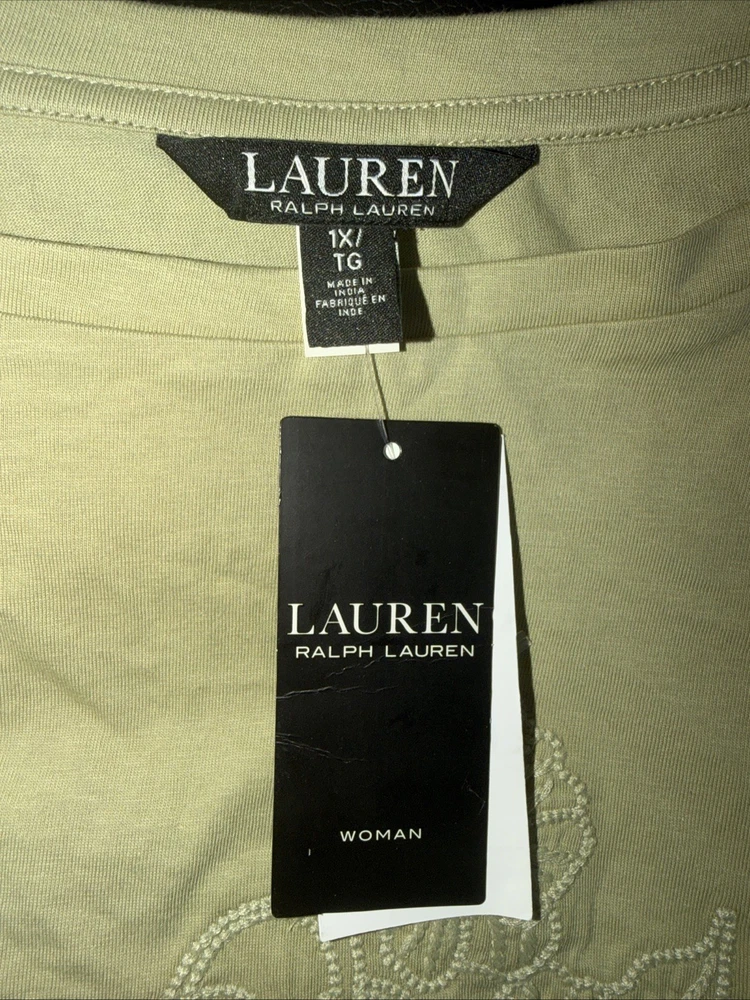 The Lauren Ralph Lauren Women's Top in Plus Size 1X is a chic and versatile piece perfect for various occasions like travel, parties, or casual wear. Made with machine washable fabric, this green top from the renowned brand is designed for plus size women up to 5'9" in height. With its stylish and effortless design, this top is sure to become a staple in any woman's wardrobe.