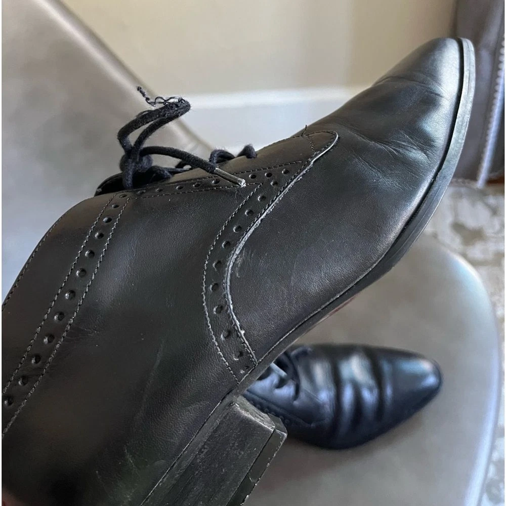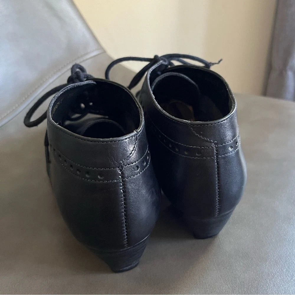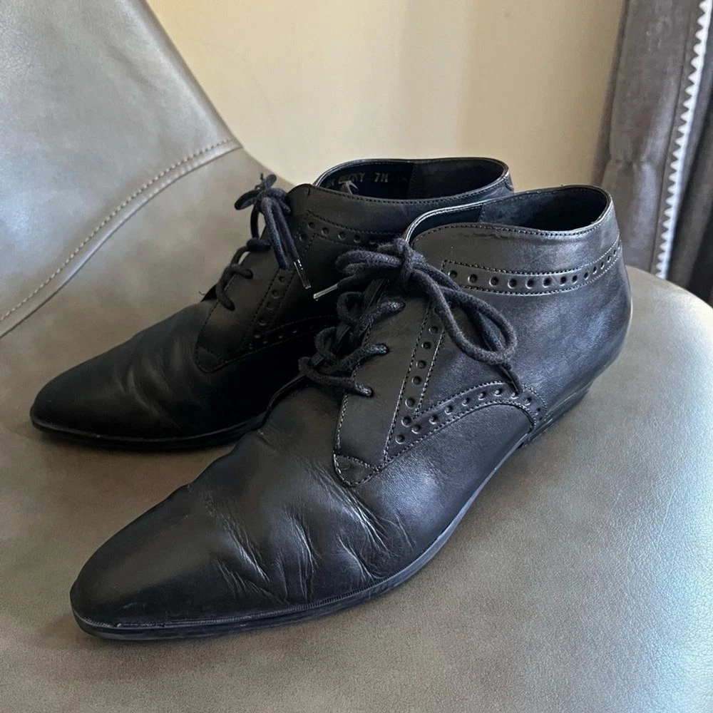 Sz 7 Lauren sport 80’s vintage bootie Lace up Oxford style Very tiny heel in back Pointed toe Genuine leather upper Black color Some wear on the bottoms, a couple of marks/scratches on exterior. The insole is coming up a bit at the toe area down inside. Some creasing Super cute!! Fun & unique I would definitely recommend these for someone with a more narrow foot. (Double check measurement of bottom sole for best fit)