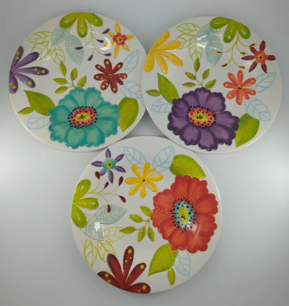 Laurie Gates FLORA 3 pc Melamine Salad Dessert Plates Replacements