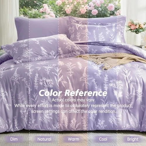Seasons: All Color: Lavender Leaves Package Dimensions: 16.54 x 11.89 x 5.16 inches Fitted Sheet Depth: 14 Inches Style: Cute Floral Pillowcase Length: 20 Inches UPC: Does Not Apply MPN: Does Not Apply Number of Pieces: 7 Item Height: 5.16 Item Weight: 8.73 pounds Material: Soft Microfiber Type: Does Not Apply Size: Queen(88"x 88") Theme: Floral Pattern: Floral Manufacturer: Does Not Apply Item Length: 16.54 Date First Available: August 6, 2024 EAN: Does Not Apply Item model number: YH7JT-US-MOOXX Product Care Instructions: Machine Wash Fabric Type: Soft Microfiber gtin13: Does Not Apply Customer Reviews: 4.5 out of 5 stars Brand: Does Not Apply Item Width: 11.89 Included Components: Pillow Sham, Comforter, Pillow Cover, Fitted Sheet, Flat