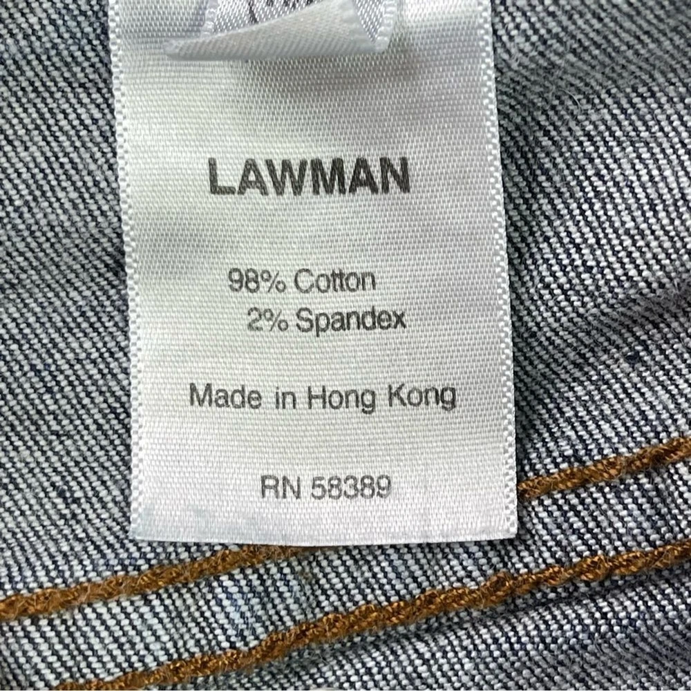 Size: 11 Garment Care: Machine Washable Inseam: 30.5 in Pocket Type: 5-Pocket Design Waist Size: 30 in Fabric Type: Denim Material: Cotton Blend Vintage: Yes Department: Women Rise: Mid (8.5-10.5 in) Size Type: Regular Theme: 90s, City, College, Preppy, Classic Color: Blue Notas del vendedor: “In excellent, pre-owned condition with no flaws to note.” Country/Region of Manufacture: Hong Kong Closure: Zip Estado del artículo: Usado Accents: Logo Type: Jeans Features: Easy Care, Pockets, Stretch Fabric Wash: Dark Season: Fall, Spring, Summer, Winter Pattern: Solid Brand: Lawman Fit: Regular Style: Bootcut
