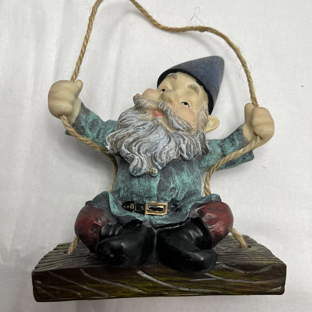 Vintage Lawn & Garden Art Decor -Gnome On A Swing by Yardwork Originals Outdoor
