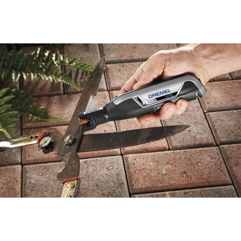 You may also like 1.5-Amp 180W Rotary Tool Kit with Flex Shaft 6 Variable Speed 8000-32000RPM 58.65 USD 61.74 USD Free shipping 5% off Give your go-to tools a new lease on life. The A679 Sharpening Kit includes three of our most-popular attachments: the Dremel chain saw sharpener, lawn mower sharpener, and garden tool sharpener. It gives the user the added capability of sharpening chainsaw blades, mulching lawn mower blades, as well as various gardening tools. Instructions Included. Lawn mower guide provides optimal sharpening angle for all lawn mower blades Easily sharpen dull, slow-cutting chain saw blades Guide helps restore edge on garden tools such as shears, hoes, and shovels Easily screws on to your rotary tool in place of the tool's housing cap Compatible with Dremel rotary tools (tool not included) 7 pieces included in pack Assembled Product Dimensions (L x W x H): 2. 32 x 4. 31 x 6. 53 Inches