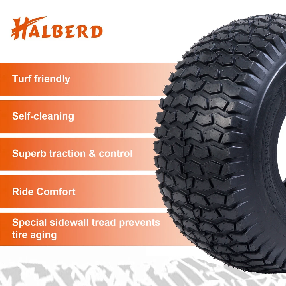 Lawn Mower Tires 15x6.00-6 15x6x6 4 PR Garden Tractor Turf Tire Heavy Duty SET 2 15x6-6 Lawn Mower Tire Specification: TT/TL: TL Tire Aspect Ratio: 75% Ply Rating: 4PR Tire Overall Diameter:15'' Tire Section Width:6'' Rim Diameter: 6'' Rim Width: 4.5'' Tread Depth: 0.18'' Load-index: 61 Tyre Pressure(psi): 30 Speed Rating: A3 Load Capacity: 570lbs Weight: 5.3lbs Features: 15x6-6 Turf Tires – Ideal for Lawn & Garden Equipment Universal Fit Design The 15x6-6 tire is designed to fit most lawn mowers, small tractors, and garden equipment, offering a versatile replacement solution for various models. Durable Construction Made from high-quality rubber, this tire is built for exceptional wear resistance and puncture protection, ensuring long-lasting performance on various terrains. Turf-Friendly Tread Design The specially designed low-impact tread pattern minimizes damage to lawns while providing excellent traction and stability, ensuring efficient operation in grass maintenance tasks. Easy Installation Standard 6-inch rim diameter ensures quick and hassle-free installation. No specialized tools are required, making it convenient for DIY users. Multi-Purpose Application Perfect for a variety of applications, from residential gardening to professional lawn maintenance and agricultural equipment , this tire meets the needs of diverse working environments. Package Include: 2x Lawn Mower Tires 15x6-6 Tires only (rim/wheel not included) Payment Delivery details Terms of sales About us Contact us Payment 1.We accept various payment methods. Paypal、Debit card、Apple Pay、Google Pay ect. Delivery details 1. Order will be shipped within 1-2 business day after payment confirmed. 2. We will arrange shipment for you from US warehouse via UPS\Fedex. 3. Delivery time varies from 2 to 6 business days. 4. We will ship to your eBay address. Please check your address at checkout. We will not responsible for wrong or undeliverable addresses. Terms of sales Buyer Guarantee We assure you that we are a honest and super reliable seller on ebay, any problems can be solved in a satisfing way for you and any loss will not be brought to you as long as you will kindly contact us via ebay message or your private email. Please kindly contact us firstly if your purchasing is in trouble before leaving any bad feedback including neutral and negative feedback and leaving 3 stars or less stars to me on 4 criteria. Return Policy Please return the item within 30 days after receiving if you are not happy with your purchasing.All returns are expected to be in original conditions, please email us first for return address and instructions. About us 1. We are specialized dealer of ATV UTV SXS Premium Tires for more than 30 years. 2. We have office and warehouse in US to ensure fast shipment and after-sale service. Contact us 1. Our customer-oriented service strives for positive feedbacks with all 5 star selling ratings. 2. Please feel free to contact us via eBay message once you have any question before you giving us negative feedback or open case. 3.We will reply in 24 business hours. 4. Business time: GMT8 (9:00-18:00) from Monday to Friday.