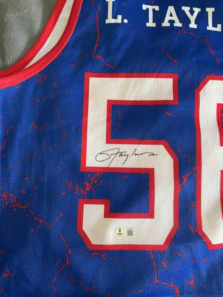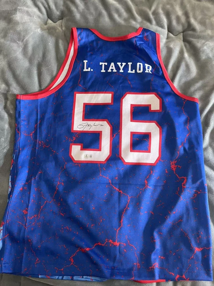 Honor the legacy of a football legend with this authentic Lawrence Taylor signed New York Giants Mitchell & Ness jersey. This piece of sports history comes with a Certificate of Authenticity from Beckett Authentication Services, ensuring the signature's legitimacy and adding to its value as an original collectible. Crafted in the United States, the jersey represents the high-quality and attention to detail that is expected from such a revered athlete's memorabilia. Whether you're a dedicated Giants fan or a serious collector of sports artifacts, this jersey is a must-have tribute to one of football's greats.