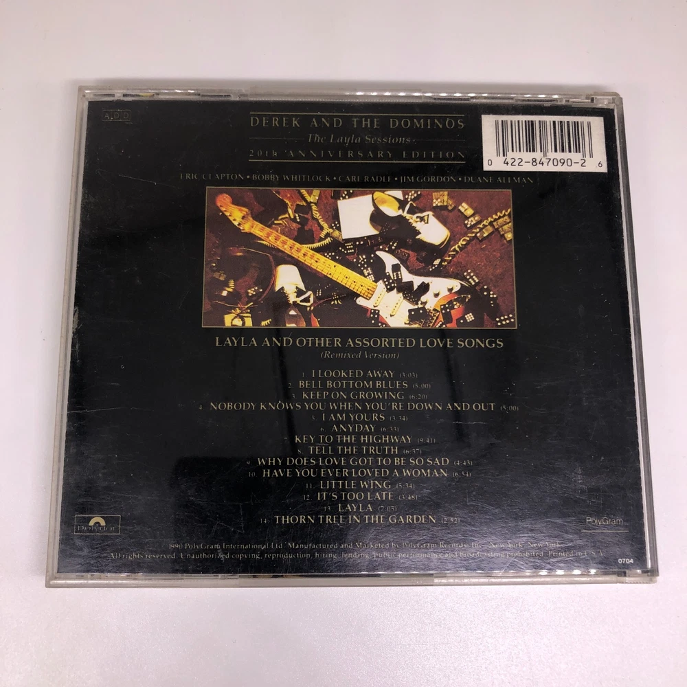 Type: Album Genre: Rock, Hard Rock, Rock & Pop Case Type: Jewel Case: Standard Record Label: Polydor UPC: 0042284709026 Style: Hard Rock Case Condition: Good (G) Release Title: Layla and Other Assorted Love Songs Format: CD gtin13: 0042284709026 Inlay Condition: Good (G) Artist: Derek & the Dominos Seller Notes: “Guaranteed to play fine, some minor scratches and blemishes can be expected. Cases may be damaged.” CD Grading: Good (G) Release Year: 1991