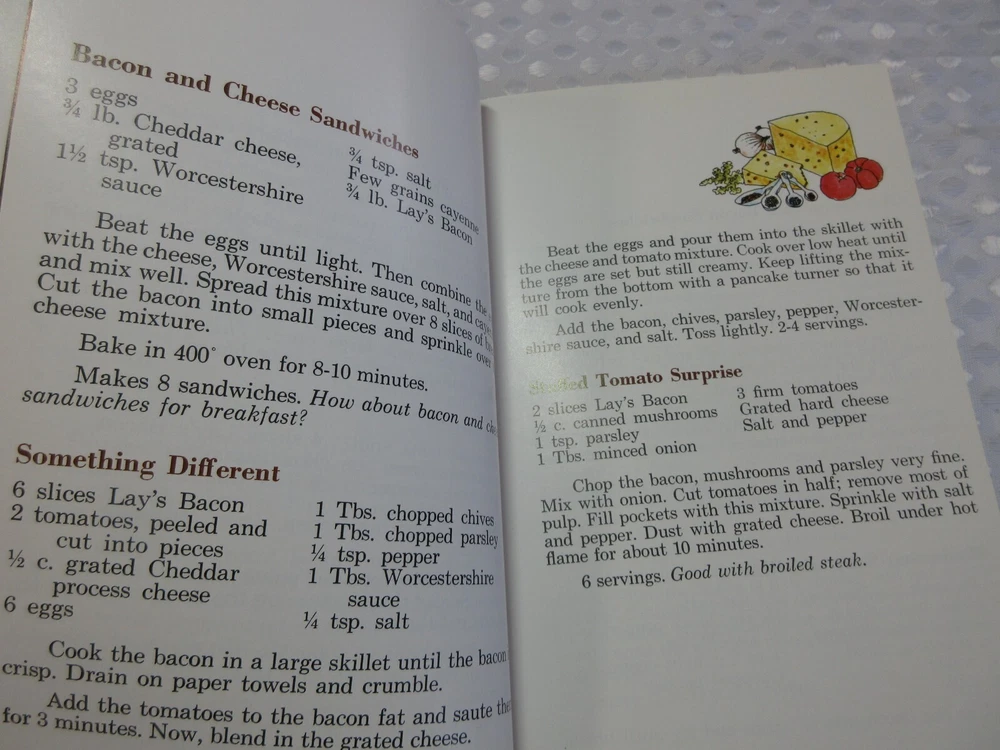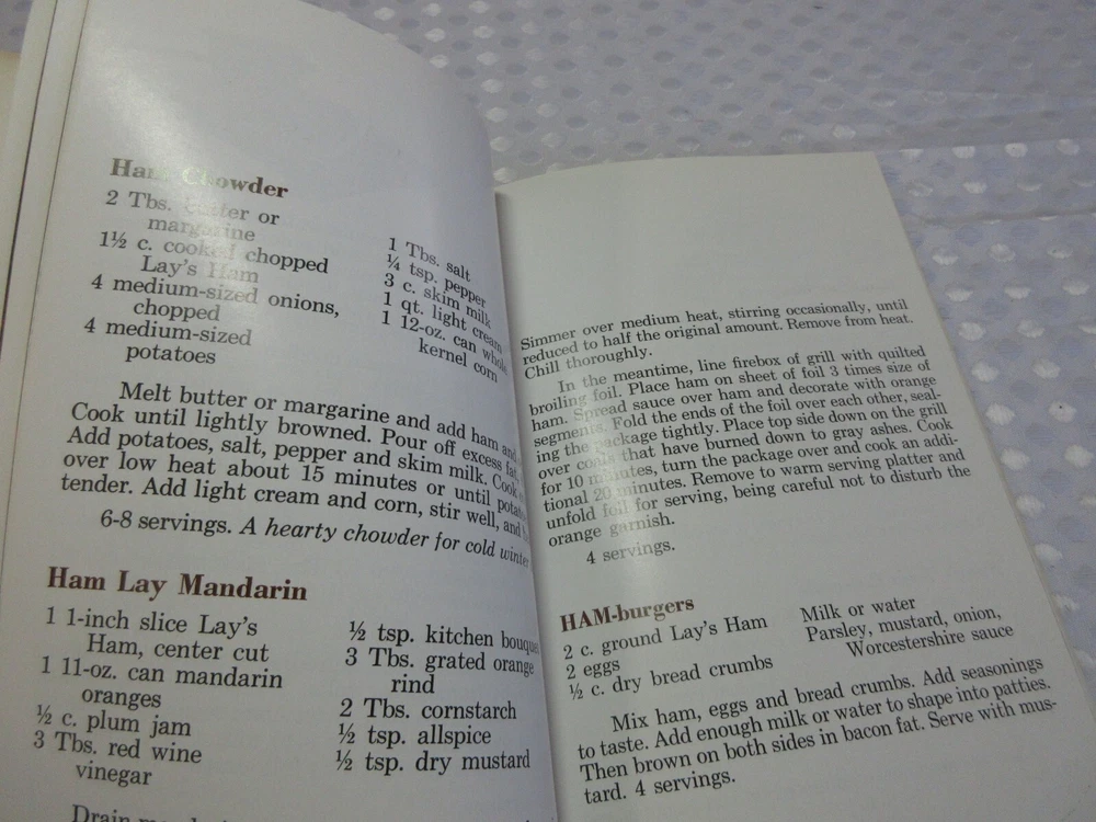 Lay Meat Company dated back to 1920 or 21, so this book must be from the late 70's. Lays was the official meat brand of the 1982 World's Fair. Great recipes, colorful illustrations. Measures approx 9"X6X3/8". Please be aware there are no returns so measure carefully! All measurements are approximate and taken with utmost attention to accuracy Smoke-free home Seller has pets Please study photographs carefully as they are part of the description and items are sold “as is” Please do not hesitate to contact me with any questions you may have or if you need additional photos Actual color of item may vary due to camera flash, computer monitor, color variations I do not accept layaway so please do not ask me to "hold" something for you beyond eBay's policy. Thank you for your understanding.
