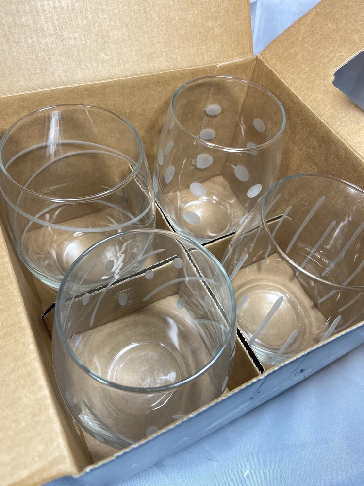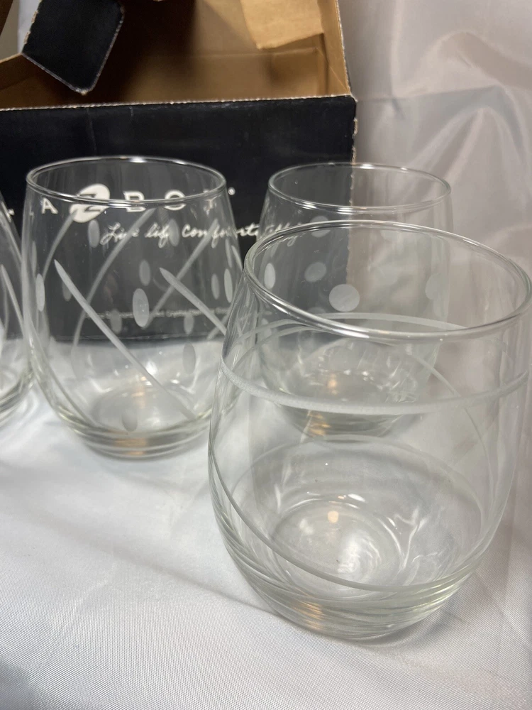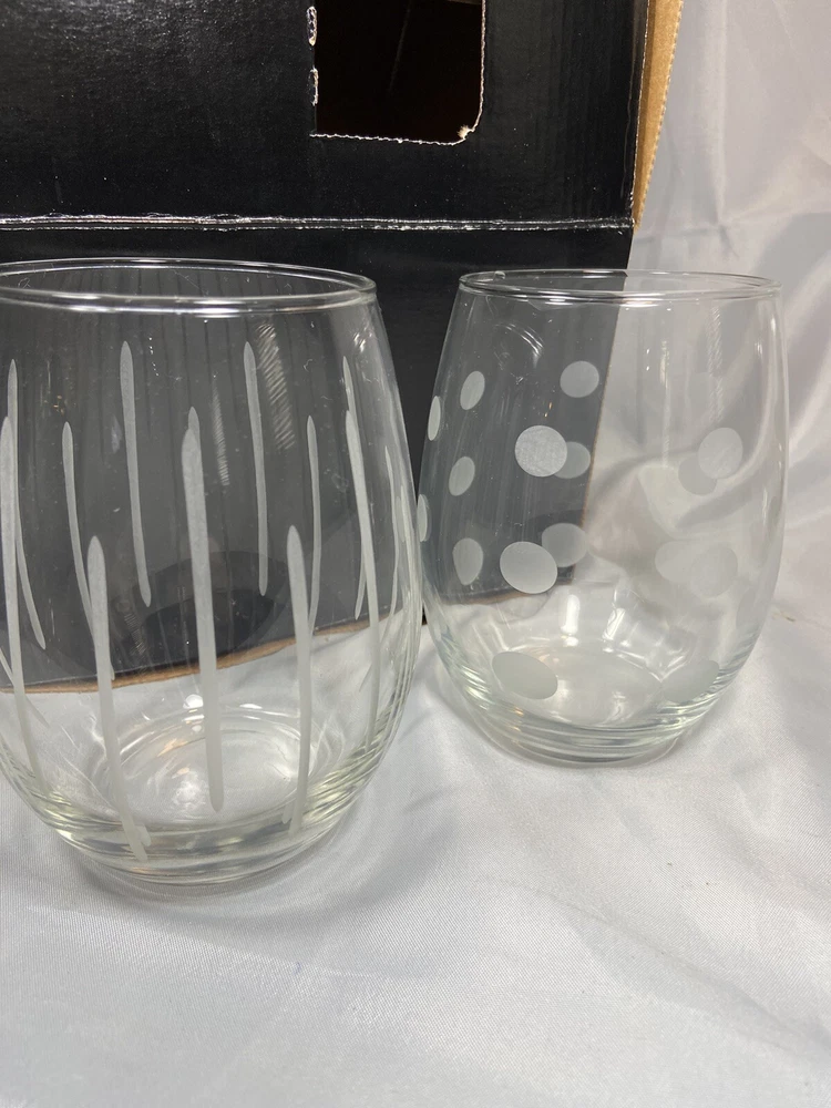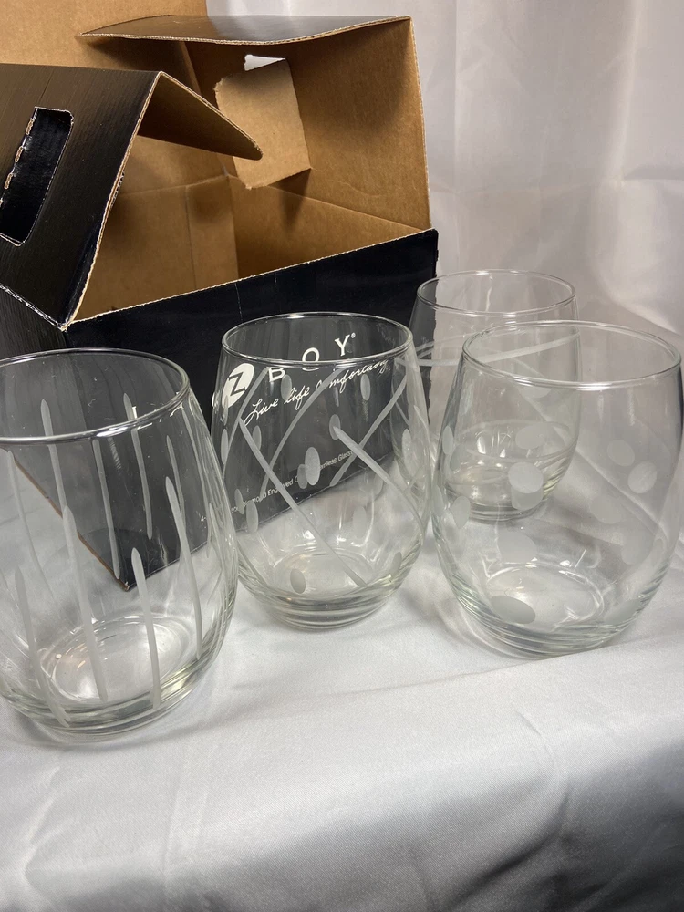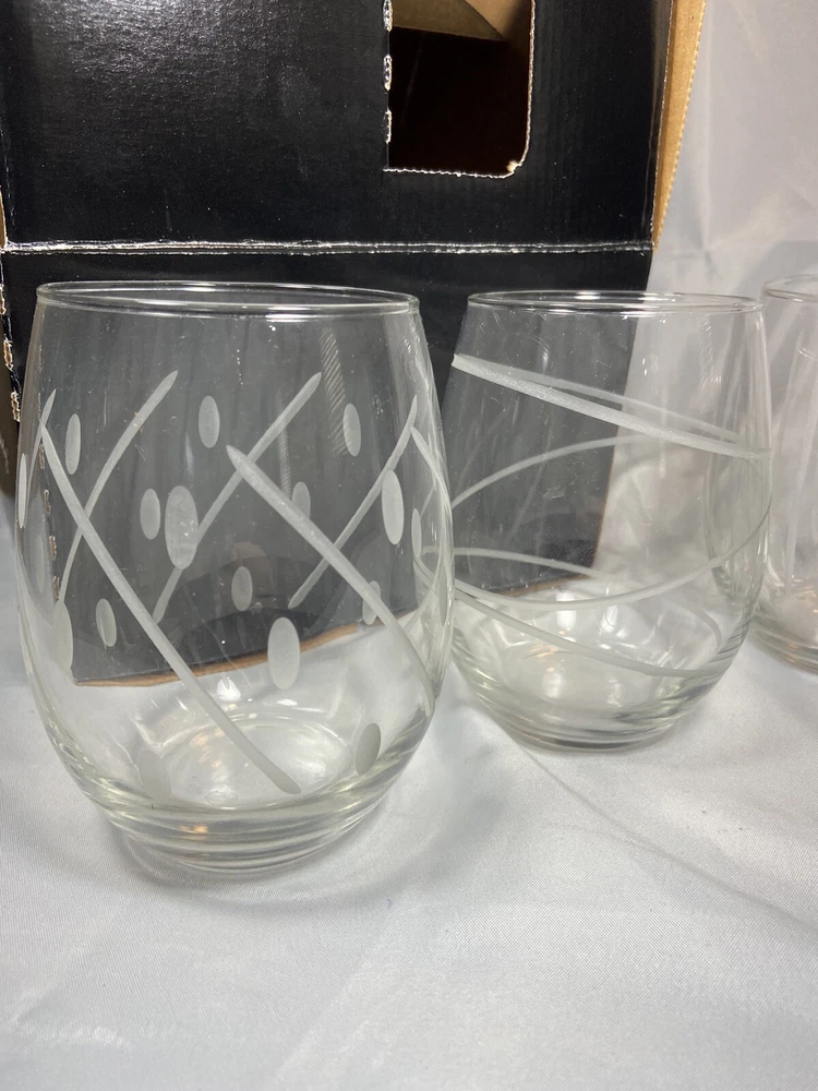 Service For:4Material:CrystalType:Stemless Wine GlassUPC:Does not applyNumber of Items in Set:Four-PieceCountry/Region of Manufacture:UnknownColor:ClearSet Includes:Stemless Wine Glassgtin13:Does not applyFeatures:EngravedOccasion:All OccasionsDepartment:AdultsBrand:LazboyShape:RoundStyle:ContemporaryGlassware Type:Glassware SetPattern:Abstract