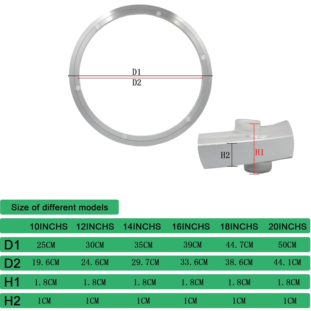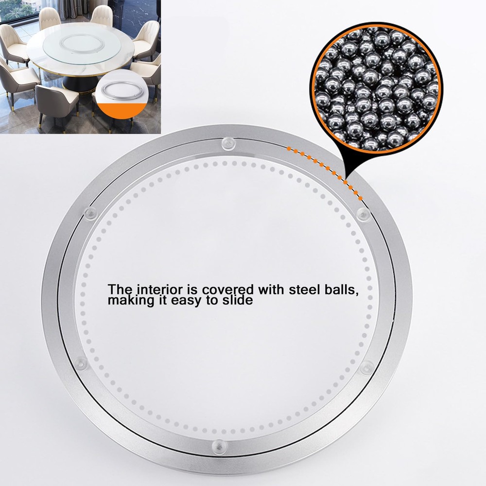 ✅【OFFERING a VARIETY of SIZES】our heavy duty non-slip aluminum turntable ball bearings offer you a variety of sizes: 10 inch, Please see our pictures for our swivel bearings. ✅【POLISHED BALL BEARINGS】Bearing balls make our bearings spin smoothly. It comes with non-slip rubber feet. You can remove the rubber feet and screw our bearings under any wood or metal top cover to create a great rotating platform. ✅【ALL ALLOY QUALITY】We use heavy duty aluminum alloy material, which is strong, durable and corrosion resistant. Our bearings can be used in a variety of applications, including but not limited to wood, glass, marble, etc. ✅【DUST AND RUST RESISTANT SWIVEL GUIDE】The gap between the two rings is exceptionally tight, making our bearings excellent at preventing dust, debris and other foreign objects from entering the gap. (If foreign matter enters and causes poor sliding, tap the swivel bearing gently, or turn it counterclockwise to easily solve the problem of poor rotation) ✅【WIDE APPLICATION】Suitable for cake decorating, TV monitor stand, electronics repair, sculpture base, food service, food display, serving, replacing damaged lazy susans. Weight capacity: 50 kg/110 lbs. Package includes 1 x 10 inch turntable bearing.