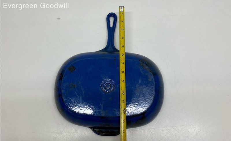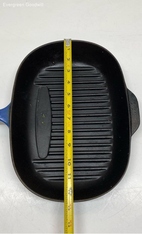 N/A Le Creuset Blue Black Cast Iron Griddle Brand: Le Creuset Style: N/A Type: Griddle Color: Blue Black Material: Cast Iron Condition: Fair - shows sign of wear Evergreen Goodwill helps people get jobs across Northwest Washington by offering high-quality free job training, education and job placement. We empower individuals to overcome barriers to working by providing comprehensive support and connecting them with life-changing job opportunities, ensuring they are career-ready and can support themselves and their families. ***Disclaimer*** All items were donated to Evergreen Goodwill of Northwest Washington with no history or provenance. The auction is for all items pictured. Items may need servicing and/or benefit from a cleaning upon arrival. Please see photos for additional details and feel free to ask questions. PAYMENTS Please note that your entire order will be canceled by eBay if the oldest item exceeds 7 days without payment. Once an order is canceled, we are unable to re-invoice and the item will be relisted. For a combined shipping invoice, please send us one request within 5 days of winning the first item to avoid cancelation of your entire order. Once a combined invoice has been sent, we are unable to add additional items to the invoice. SHIPPING Local pickup only available to items listed as Local Pickup at this time. Interntaional shipping is not available at this time. We offer combined shipping as long as items will ship safely together. Auctions must end within 5 days of each other to be eligible for combined shipping. Please hold off on payment until all auctions have ended then proceed to checkout. Please do not pay for any items individually if you wish to have them combined - they must be paid at the same time. Items listed for flat-rate shipping are not eligible for combined shipping. PO Box addresses will require USPS shipments as FedEx Ground will not deliver. If FedEx is selected we may need to invoice for additional shipping costs.