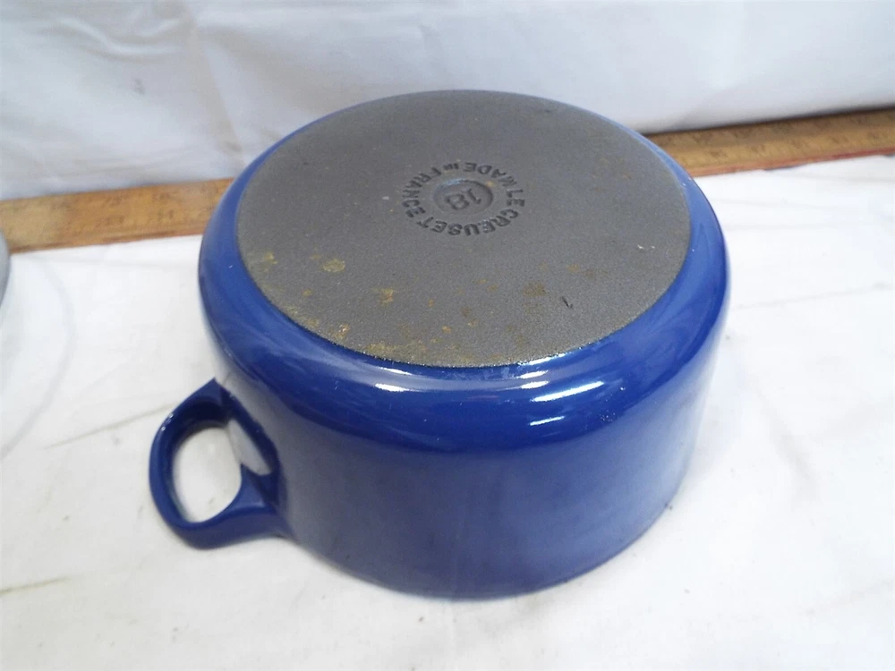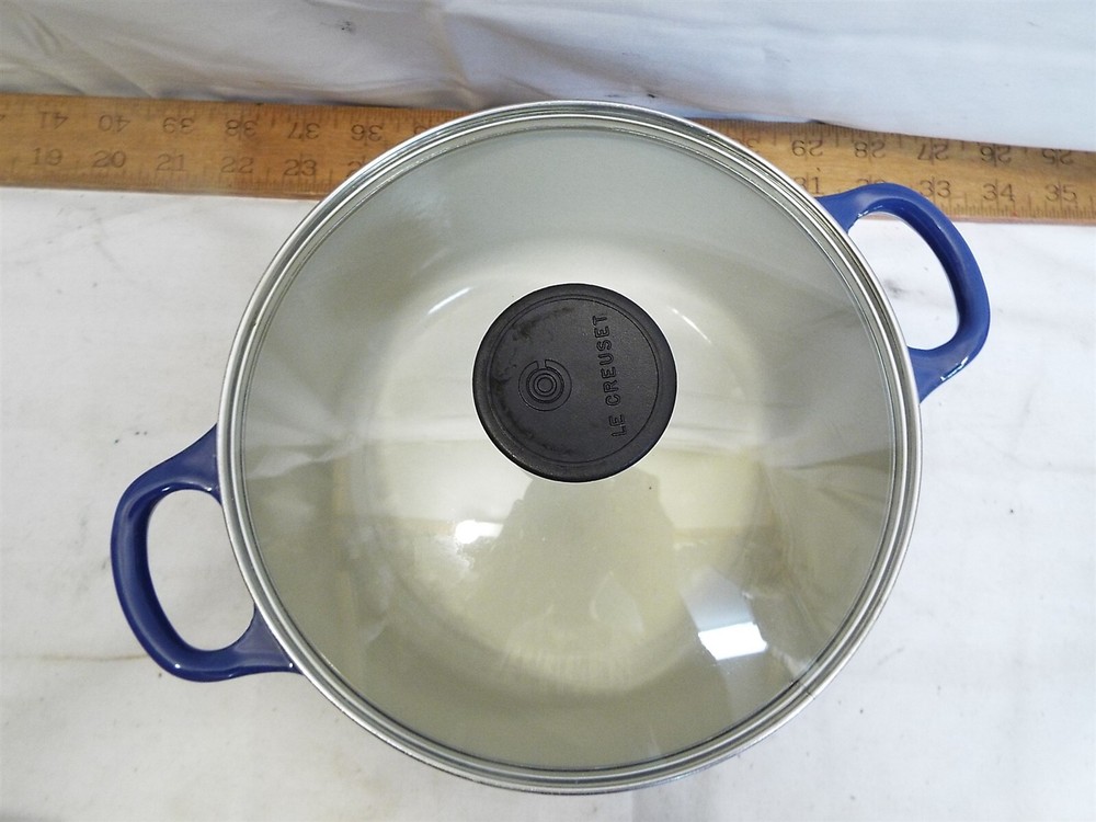 Item Description A nice Le Creuset small or petite stock pot with a glass lid. In overall good used condition with some mild wear. The pan measures about 7 by 3-1/4" internal. A few mild marks in the finish. No apparent damage. Shelf K/012125 - CO We sell mostly USED and UNIQUE items. Expect minor evidence of use or imperfections, dings etc. from age. We take many photos of our items to assist with the description. Please use the photos to help judge content and condition. BUY WITH CONFIDENCE : We have sold over 25,000 antiques on-line since 1997 with over 15,000 positive customer feedback. We have been giving quality service to the on-line collector community for over 19 years. Our selling history speaks for itself so that you can buy with confidence. RETURNS : Accepted, full purchase price refunded upon return. Buyer to pay return shipping. Please inspect your item, and notify us of a return within 3 days of receiving it. SHIPPING : 99% of items shipped within three business days. Powered by SixBit's eCommerce Solution