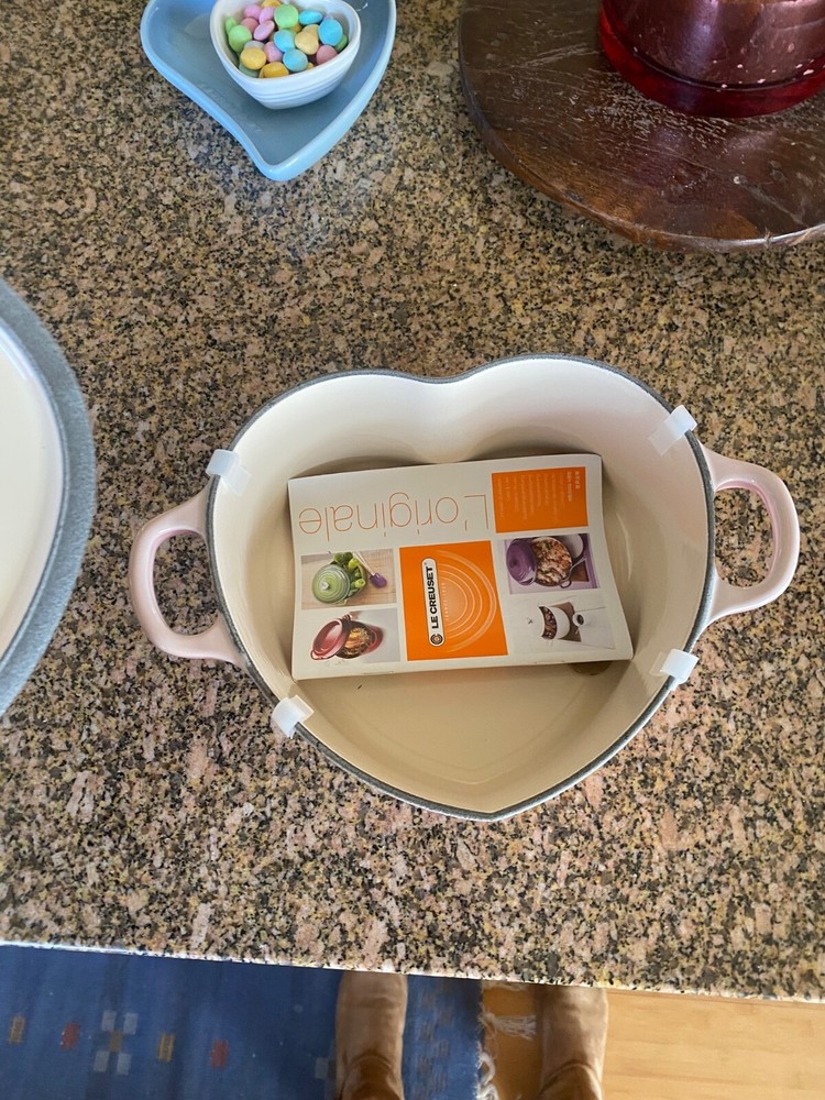 Brand new. Experience the magic of slow cooking with the Le Creuset Heart Cocotte, a 2-quart Dutch oven that promises both aesthetic appeal and culinary excellence. Crafted with high-quality cast iron and finished with a charming enamel in a delightful shell pink, this piece is not just a functional kitchen staple but also a collectible that brings a pop of color to your cookware collection. Designed for versatility, the cocotte is suitable for all stove types—electric, gas, and induction—making it a universally compatible addition to your kitchen. With its unique heart shape and included lid, this Dutch oven is perfect for crafting hearty stews, braised meats, and more while bringing a touch of French craftsmanship to your cooking routine.