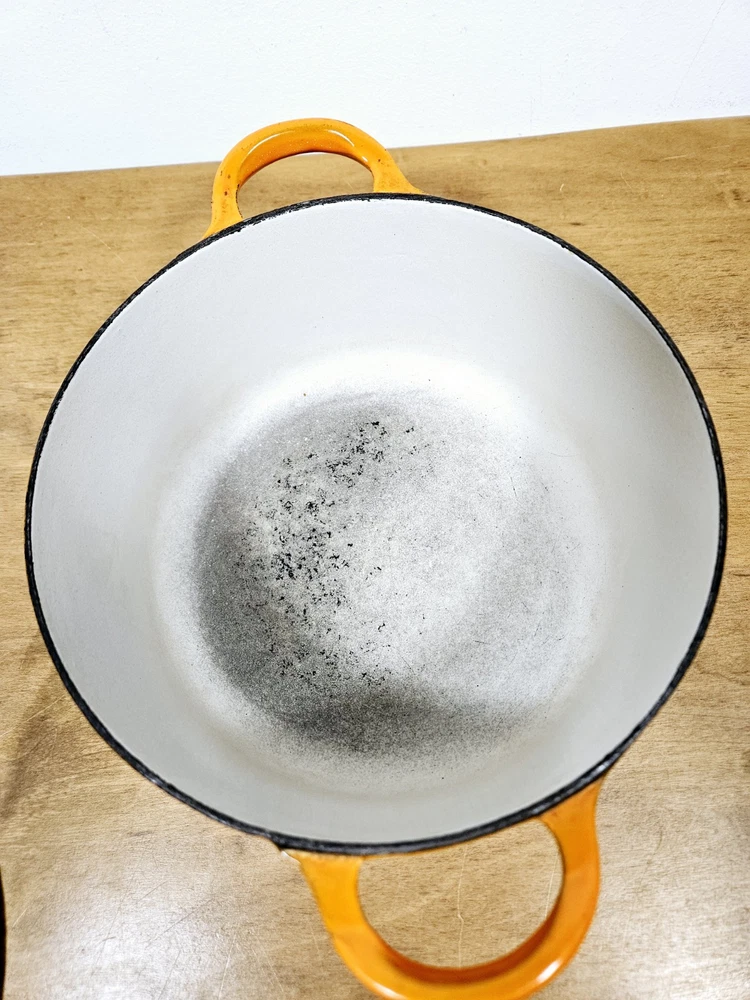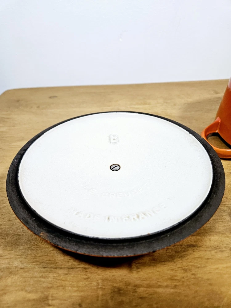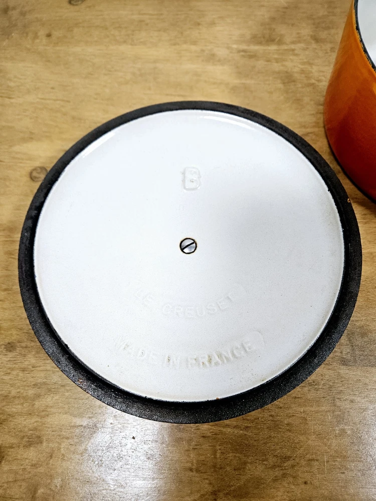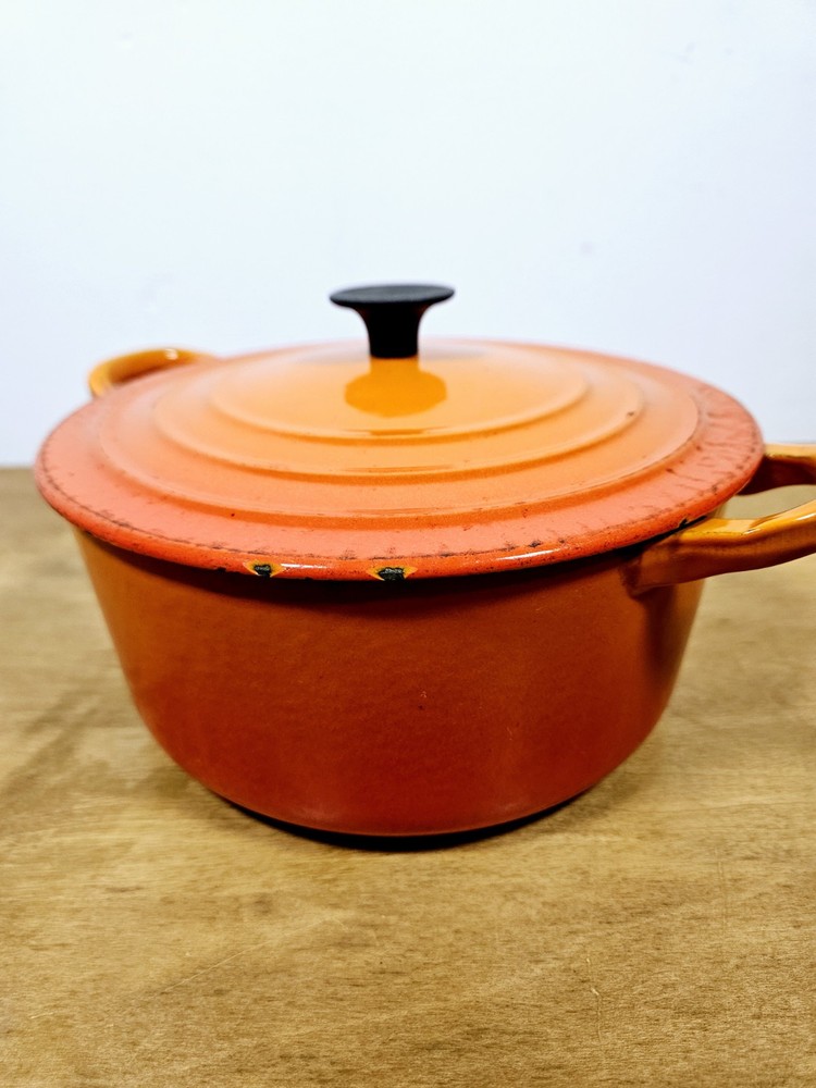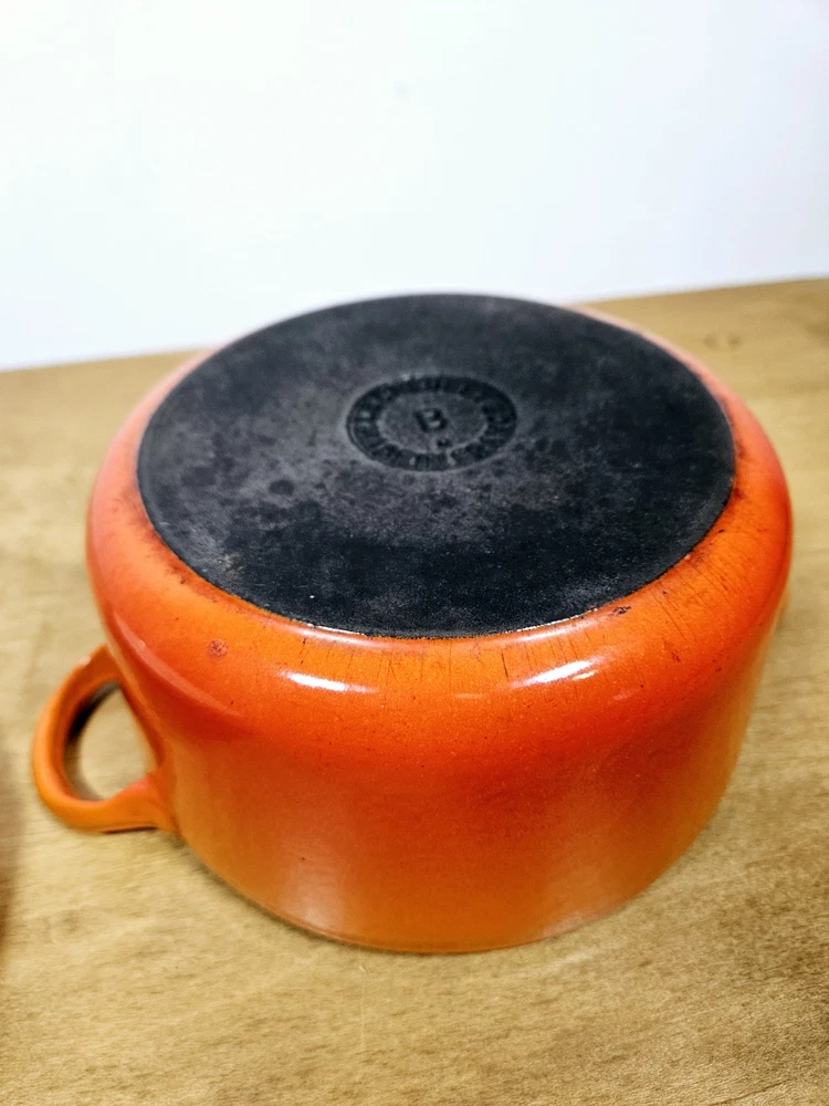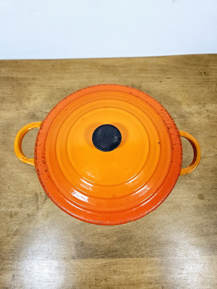 Le Creuset 7.5" 2-qt Round Dutch Oven Flame Orange Enameled Cast Iron France Lid In overall fair used condition with signs of wear from use and age including staining, chipping and scratching. See photos for complete cosmetic condition and any major flaws. Ships from Philadelphia, PA next business day! Questions/Concerns - We are ready to help with any questions or concerns you may have regarding our inventory. Please contact us and we will respond ASAP! Feedback - We appreciate your business and really hope you'll consider leaving us feedback after your purchase to let us know how we're doing. We will of course return the favor! Thank you for checking out our listing! Returns - If you purchase our item and would like to return it due to damage or listing misinformation, you are able to return it up to 60 days past the purchase date with free postage. If you are returning an item not due to an error on our part, shipping costs are the responsibility of the buyer.