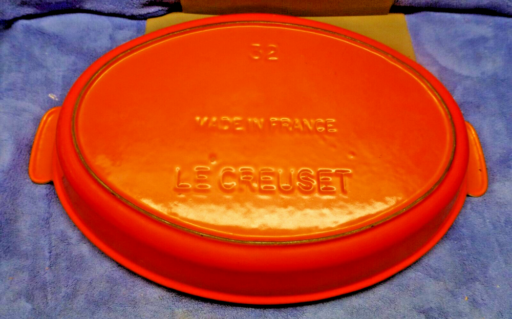 Le Creuset #32 Orange Enameled Cast Iron Au Gratin Oval Baking Casserole Dish THANKS FOR LOOKIN, SEE MY OTHER COOL STUFF IN MY STORE , PLEASE EMAIL IF YOU HAVE QUESTIONS ABOUT THIS ITEM BEFORE BIDDING...THANKS FOR LOOKING Please contact us for international shipping rates before you place your bid!!! Please contact us for SHIPPING COST TO STATES OTHER THAN THE CONTINENTAL STATES Be sure to add me to your favorites list! ........ please contact me before leaving a negative feed back Check out my other items!Sign up for PayPal; the fast, easy, and secure way to pay online. Sold as is. NO RESERVE, PLEASE CONTACT THE SALER BEFORE LEAVING A NEGATIVE FEEDBACK