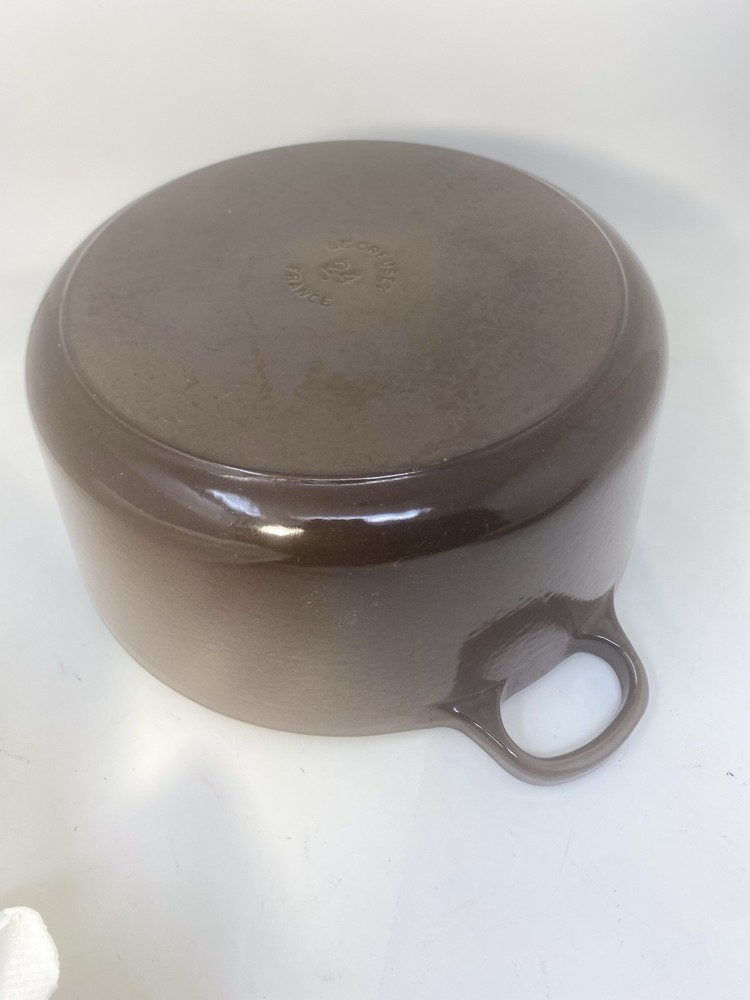 HI, HERE'S ANOTHER ONE OF MY GREAT DEALS!! I am off ering a - Gently Used - Genuine Le Creuset #24 Chocolate Brown Cast Iron Dutch Oven 4.5 qt. France * Shipping is $26.95 to any (some very Rural US locations may require an additional surcharge) address in the Continental United States (HI and AK additional)! All others either check the shipping calculator or email us for a shipping quote. Thanks!! **Please Note : Only items pictured are included in this auction. Please Note: Ladylocks33 are NOT authorized dealers for any of the products that we sell on eBay. Therefore, we do NOT guarantee the items featured in this listing will be covered by the manufacturer's warranty/support. Laylocks33 is not sponsored by or affiliated with the brand associated with the product being sold. All company, product and service names used in our eBay listings are for identification purposes only. All trademarks and registered trademarks are the property of their respective owners. Thank you! DUE TO SANITARY REASONS... If you ordered this in error, we cannot refund you. Please ask all questions prior to purchasing. Thanks! A return will be accepted ONLY if the item has in some way been misrepresented and ONLY if it is still in the same condition it was received in. *** If a Return is accepted the item must be returned in the same Unwrapped Unused Condition it was received in. There Will Be A 25% Restocking Fee Charged On Returns Of This Item Due To Buyers Remorse Also Buyer Is Responsible For Return S/H*** Disclosure: I am not an authorized reseller or affiliated with Select Comfort Sleep Number Company, SLEEP NUMBER, SELECT COMFORT, SLEEPIQ, and Double Arrow are registered trademarks of Select Comfort Corporation. All trademarks, logo's or slogans that appear on this website are the property of their respective owners. PAYMENT INSTRUCTIONS: I ONLY ACCEPT PAYPAL AND CREDIT CARDS THROUGH PAYPAL. INSURANCE IS INCLUDED IN UPS SHIPPING. IF YOU ARE NOT CLEAR ON THE ITEM DESCRIPTION OR INCLUDED ITEMS YOU ARE WELCOME TO ASK AS MANY QUESTIONS AS NEEDED BUT PLEASE ASK ALL QUESTIONS BEFORE YOU PURCHASE ! ALL ITEMS HAVE BEEN TESTED TO THE BEST OF OUR ABILITY AND EXAMINED PRIOR TO PACKING TO ASSURE THERE ARE NO BROKEN PARTS AND IT IS IN WORKING CONDITION. YOUR ITEM(S) IS INSURED BY THE SHIPPING COMPANY NOT THE SELLER . A SHIPPING CLAIM WILL BE FILED FOR A FULL REFUND ALL ITEMS DAMAGED DURING SHIPPING. PLEASE KEEP ALL PACKING MATERIALS UNTIL YOU ARE SURE NO DAMAGE HAS OCCURRED TO YOUR ITEM DURING SHIPPING. IF ANY DAMAGE IS FOUND TO YOUR ITEM PLEASE CONTACT THE SELLER IMMEDIATELY NOT THE SHIPPING COMPANY. All Items included have been described as accurately as possible and unless otherwise stated in the description only Items pictured are included in this listing! International Buyers – Please Note: Import duties, taxes and charges are not included in the item price or shipping charges. These charges are the buyer's responsibility. Please check with your country's customs office to determine what these additional costs will be prior to bidding/buying. These charges are normally collected by the delivering freight (shipping) company or when you pick the item up – do not confuse them for additional shipping charges. We do not mark merchandise values below value or mark items as "gifts" - US and International government regulations prohibit such behavior. OUR SHIPPING IS BASED ON YOUR ZIP CODE! PLEASE CHECK OUT OUR OTHER AUCTIONS FOR MORE GREAT DEALS !! *** WE WILL GLADLY COMBINE SHIPPING TO SAVE YOU MORE *** View more great items