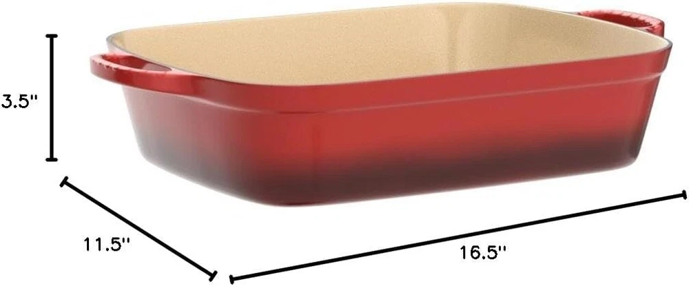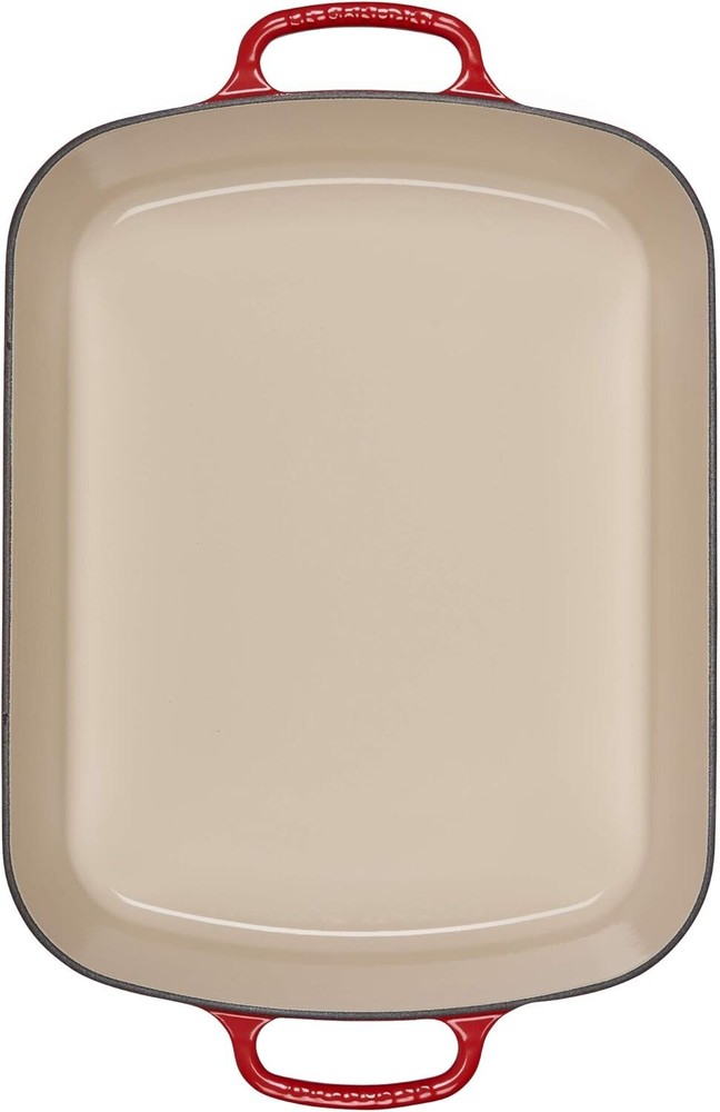 Le Creuset Enameled Cast Iron Signature Rectangular Roaster, 7 qt. (12.8" x 18.7"), Cerise Product Dimensions 16.5"L x 11.5"W x 3.5"H Color Cerise Material Enameled Cast Iron Capacity 6.6 Liters Finish Type Painted About this item Low-profile design is optimized for oven roasting Even heat distribution and superior heat retention Durable, nonreactive sand-colored interior enamel Colorful, long-lasting exterior enamel resists chipping and cracking Gas, Electric, Ceramic, Halogen, Induction, Oven & Outdoor Grill