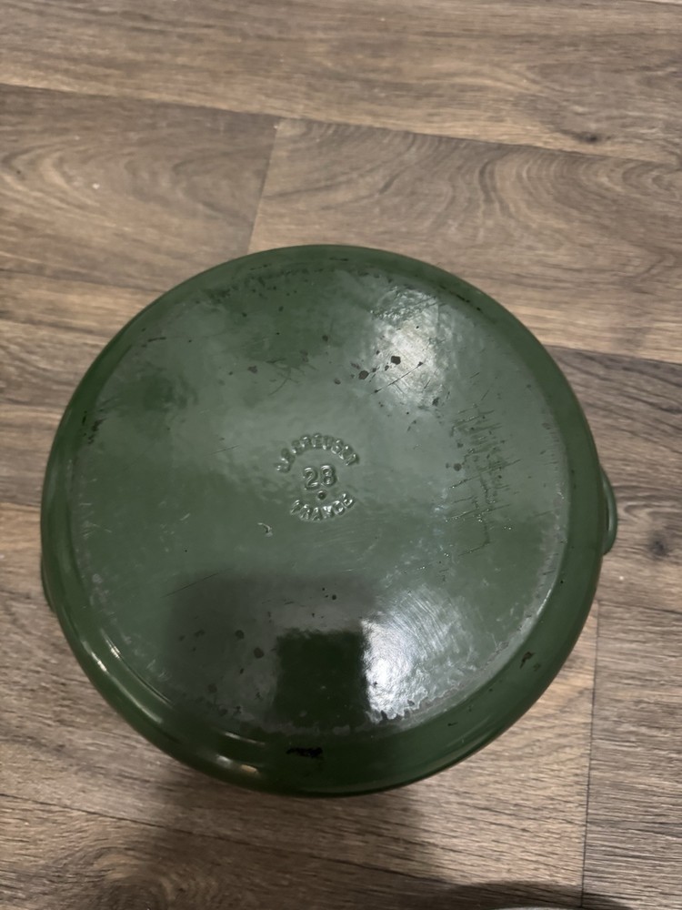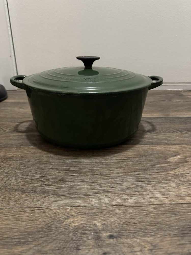 Le Creuset Signature Cast Iron Dutch Oven 7.25 Quart Artichaut Green Has Damage. Condition is Used. Shipped with USPS Ground Advantage.