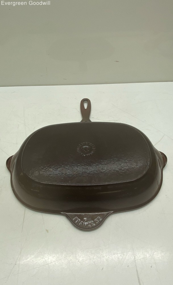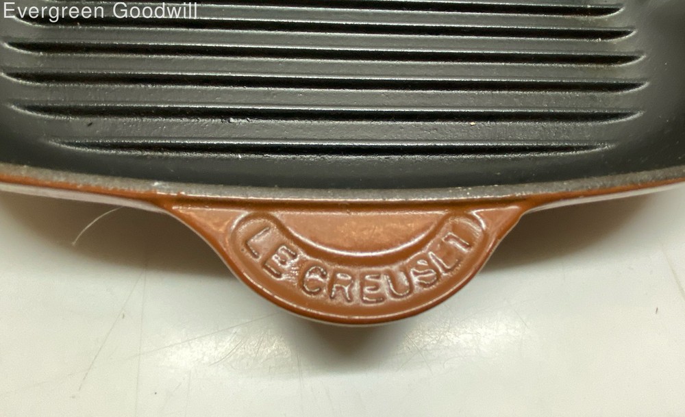 Oval Griddle Pan Le Creuset Brown/Black Cast Iron/Enamel Oval Griddle Pan Brand: Le Creuset Style: Oval Griddle Pan Type: Oval Griddle Pan Color: Brown/Black Material: Cast Iron/Enamel Condition: Good - shows some sign of wear Evergreen Goodwill helps people get jobs across Northwest Washington by offering high-quality free job training, education and job placement. We empower individuals to overcome barriers to working by providing comprehensive support and connecting them with life-changing job opportunities, ensuring they are career-ready and can support themselves and their families. ***Disclaimer*** All items were donated to Evergreen Goodwill of Northwest Washington with no history or provenance. The auction is for all items pictured. Items may need servicing and/or benefit from a cleaning upon arrival. Please see photos for additional details and feel free to ask questions. PAYMENTS Please note that your entire order will be canceled by eBay if the oldest item exceeds 7 days without payment. Once an order is canceled, we are unable to re-invoice and the item will be relisted. For a combined shipping invoice, please send us one request within 5 days of winning the first item to avoid cancelation of your entire order. Once a combined invoice has been sent, we are unable to add additional items to the invoice. SHIPPING Local pickup only available to items listed as Local Pickup at this time. Interntaional shipping is not available at this time. We offer combined shipping as long as items will ship safely together. Auctions must end within 5 days of each other to be eligible for combined shipping. Please hold off on payment until all auctions have ended then proceed to checkout. Please do not pay for any items individually if you wish to have them combined - they must be paid at the same time. Items listed for flat-rate shipping are not eligible for combined shipping. PO Box addresses will require USPS shipments as FedEx Ground will not deliver. If FedEx is selected we may need to invoice for additional shipping costs.