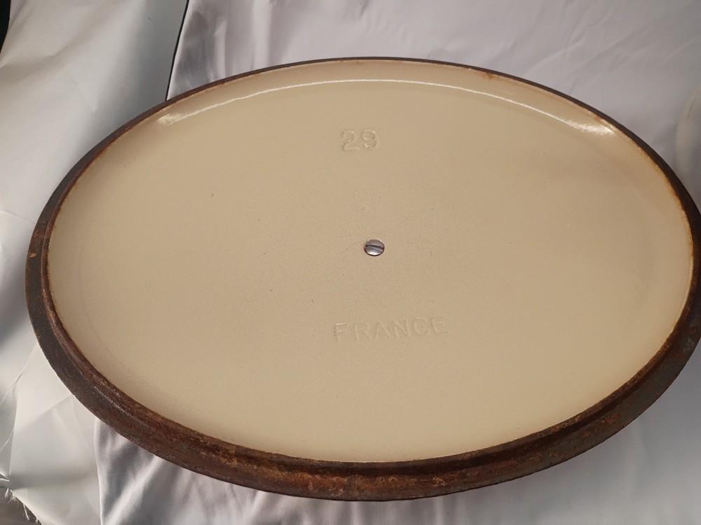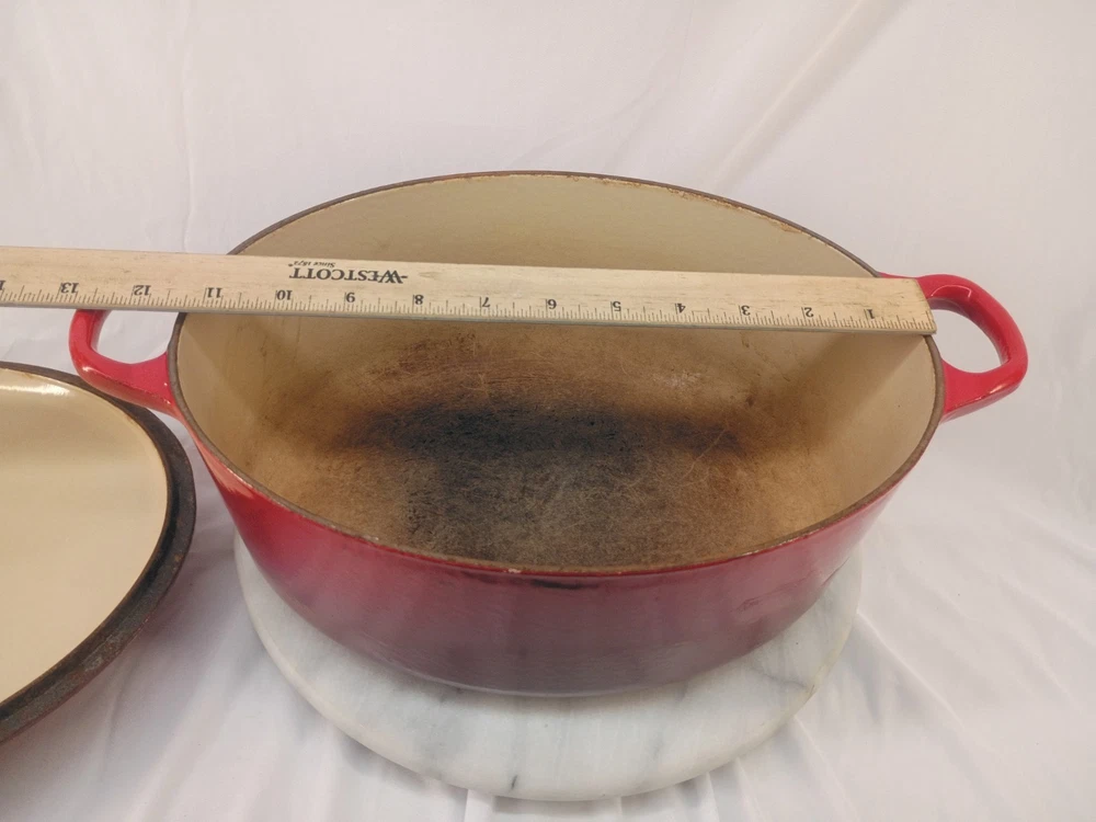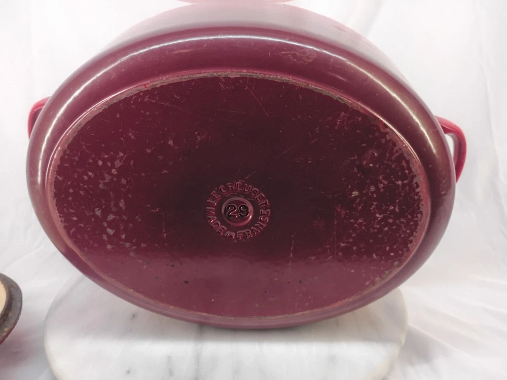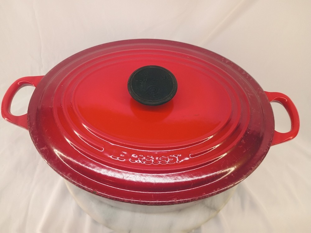 The Le Creuset Oval Dutch Oven #29 Signature is a high-quality kitchen essential that offers durability and versatility. Made of cast iron with a stylish enamel coating in cerise red, this Dutch oven is designed to be used on induction, electric, and gas stoves. It has a 5 qt capacity, perfect for cooking large meals, and comes with a matching lid to keep your food fresh. With heat resistance up to 500 ° F, this Dutch oven is a reliable choice that will last for years to come. Thank you for visiting my listing today and thank you for your interest in this item! My goal is to have a pleasant transaction resulting in a satisfied customer. I hope any transaction between us leaves you with a feeling of confidence knowing you can trust me and the items I offer here. *Most if not all my listings are set to accept offers. Feel free to send an offer and I will be happy to consider it!! *Please contact me with any questions or concerns and I will be happy to help. *Always examine the photos carefully, and if in doubt, email me with any questions you may have. *Please note that condition statements are offered as a guide only. They will always be somewhat subjective and reflect our opinion, which may not necessarily agree with someone else's opinion. PLEASE READ: I aim to please and I want my buyers to have a positive transaction with me. If you have questions, concerns, or special requests related to any of my items I hope you will contact me so we can work them out to your satisfaction. I sell my items to give you a great item at a decent price while making a little profit at the same time. If you feel the item you are interested in is too pricey do not hesitate to send me a fair offer and I will consider it. My goal is to satisfy your needs and mine so both parties can benefit. SHIPPING: If you prefer a different shipping method or company please contact me and I will do all I can to make that happen. If you have concerns or requests about the packaging of your item contact me and I will do all I can to accommodate them. Shipping costs are based on location in each state or country, the costs always differ. After I have received your payment I will ship your item out within 3 business days or less excluding weekends and holidays. BEFORE PURCHASING & BIDDING: **Please see all the pictures. I do not have great photography skills but I try to get the most accurate photos I can. If you are unsure about something you see in a photo contact me so I can do what I am able to answer your concern about the item. **I cannot stress enough that if you have any questions or concerns please contact me before purchasing and bidding. Communication can solve so much. **As a customer myself, I understand the meaning of customer satisfaction and my goal is to have nothing but satisfied customers. If you are not unsatisfied with your purchase I ask that you please contact me so I can take care of your issue. My goal is for you to be 100% satisfied. INTERNATIONAL BUYERS WELCOMED - PLEASE NOTE: I welcome International buyers! Please be aware that any custom/duties/taxes that the parcel might incur once it is out of the USA are the responsibility of the buyer. Please check with your country's customs office to determine what these additional costs will be prior to bidding or buying. Please refer to the eBay Site Map for more information if needed.