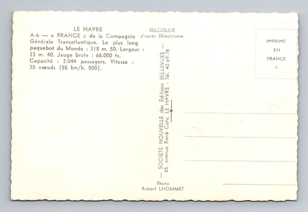 Le Havre-France, Cruise Ship, Ships, Transportation, Antique Vintage Postcard