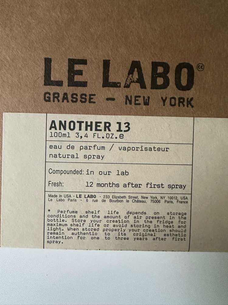 Brand: Le Labo Fragrance Name: Another 13 Size: 100ml / 3.4 fl oz Condition: Gently used – approx. 85–90% full (see actual photos) Gender: Unisex Type: Eau de Parfum Category: Niche / Luxury Perfume Packaging: Includes original box (if applicable – please see photos