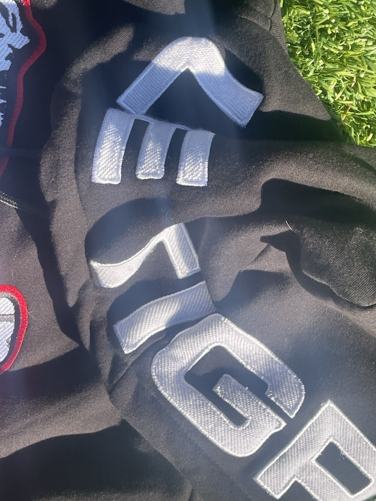 Le Tigre Men's Chenille Embroidered Tiger Logo Hoodie Sweatshirt - Black