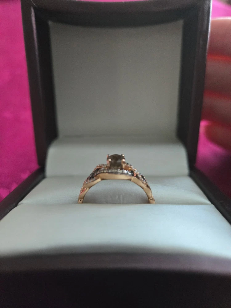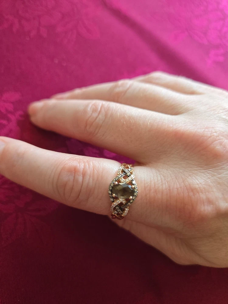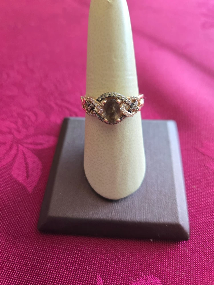 Le Vian 14K Strawberry Gold Chocolate Quartz Ring w. Chocolate/Vanilla Diamonds size 9. Will ship for inspection ASAP once cleared payment is received. Thanks for looking and God bless, Jeremy