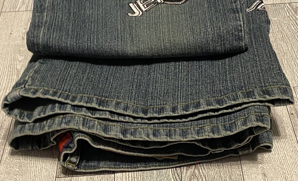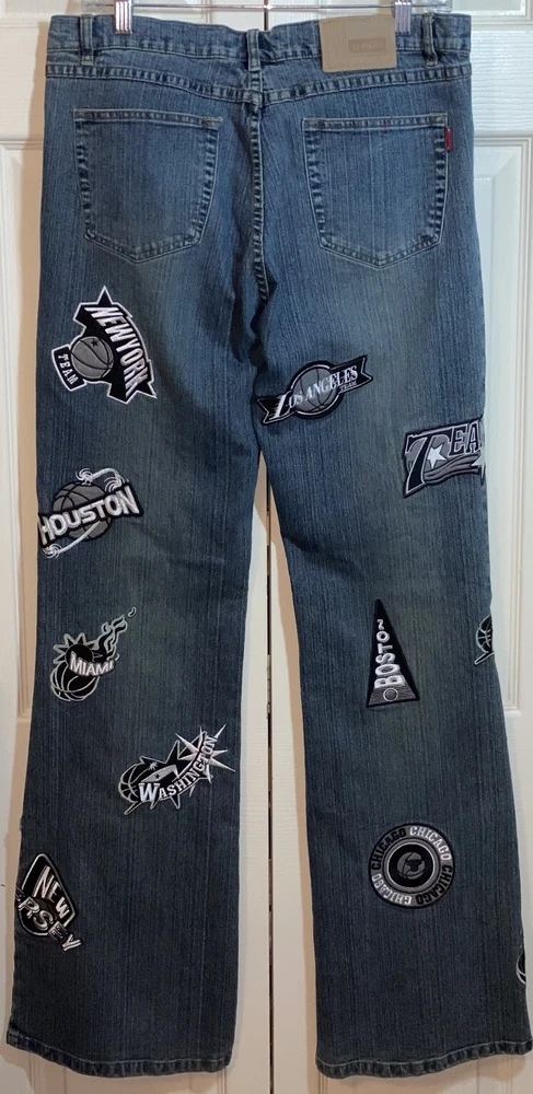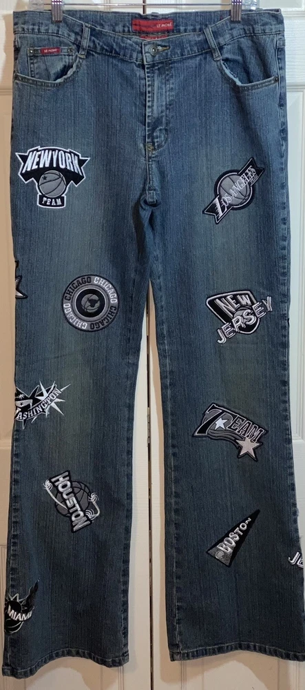 Elevate your style with these trendy Le More jeans featuring an NBA teams patch. These classic fit, medium wash jeans are perfect for any casual occasion. The straight style with logo accents adds a touch of uniqueness to your outfit. The jeans are made of high-quality fabric ensuring comfort and durability. Available in size 15, these blue jeans are a must-have for any women's wardrobe.