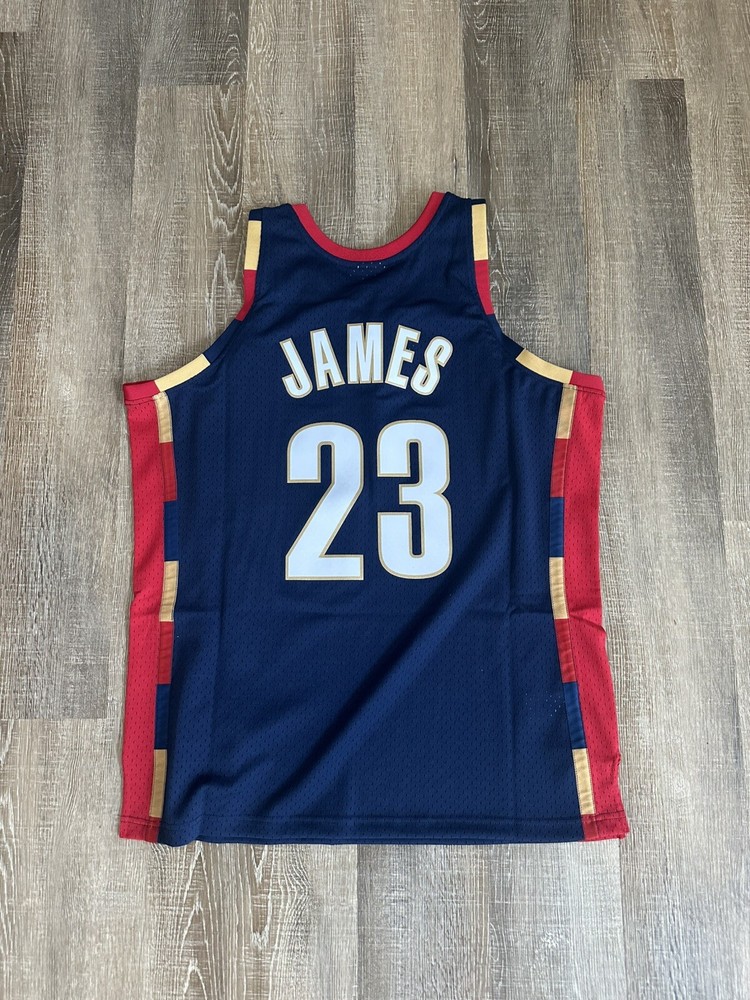 Color:BlueLeague:National Basketball Association (NBA)Sport:BasketballGender:MenBrand:Mitchell & NessProduct:JerseySize:XLTeam:Cleveland CavaliersOfficially Licensed:YesPlayer:LeBron James