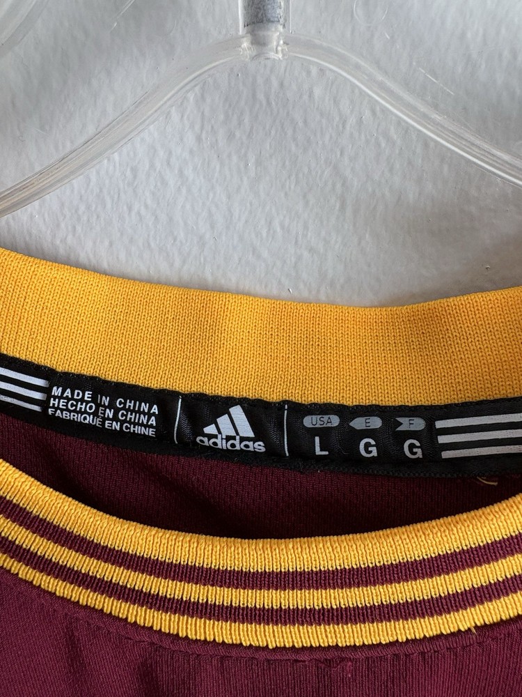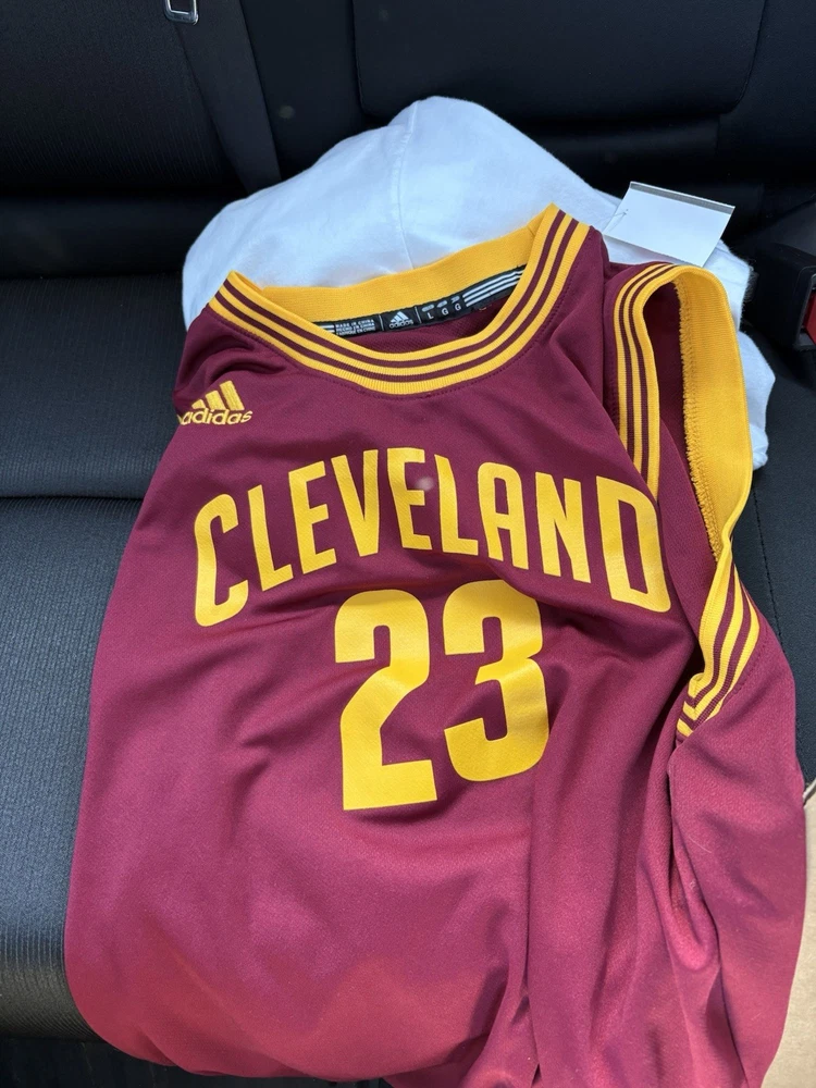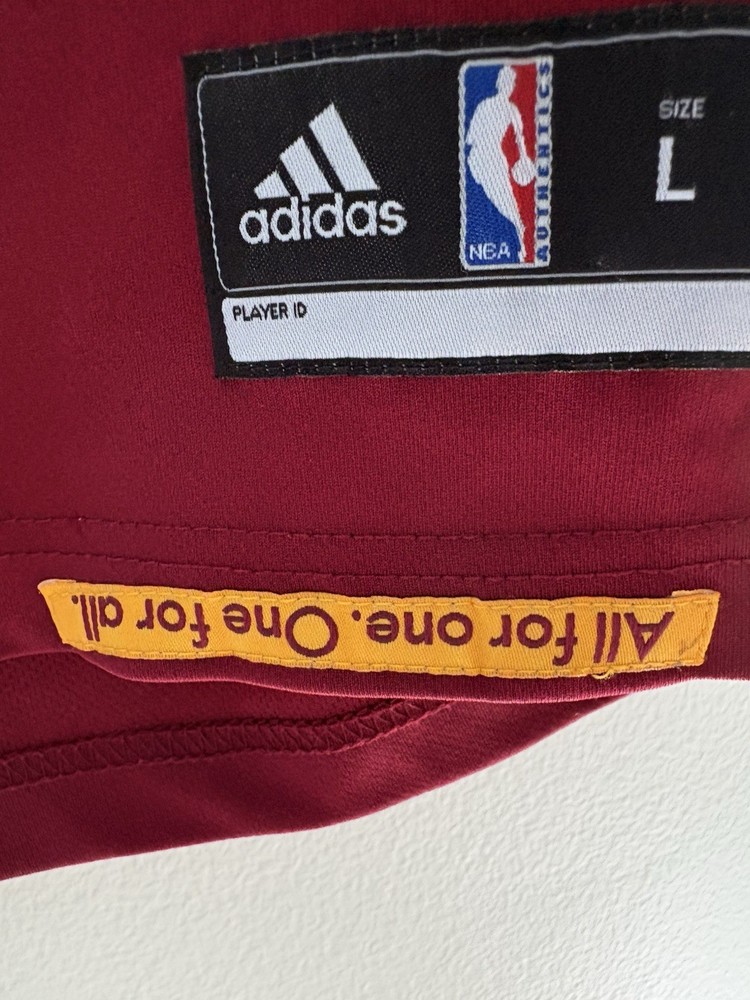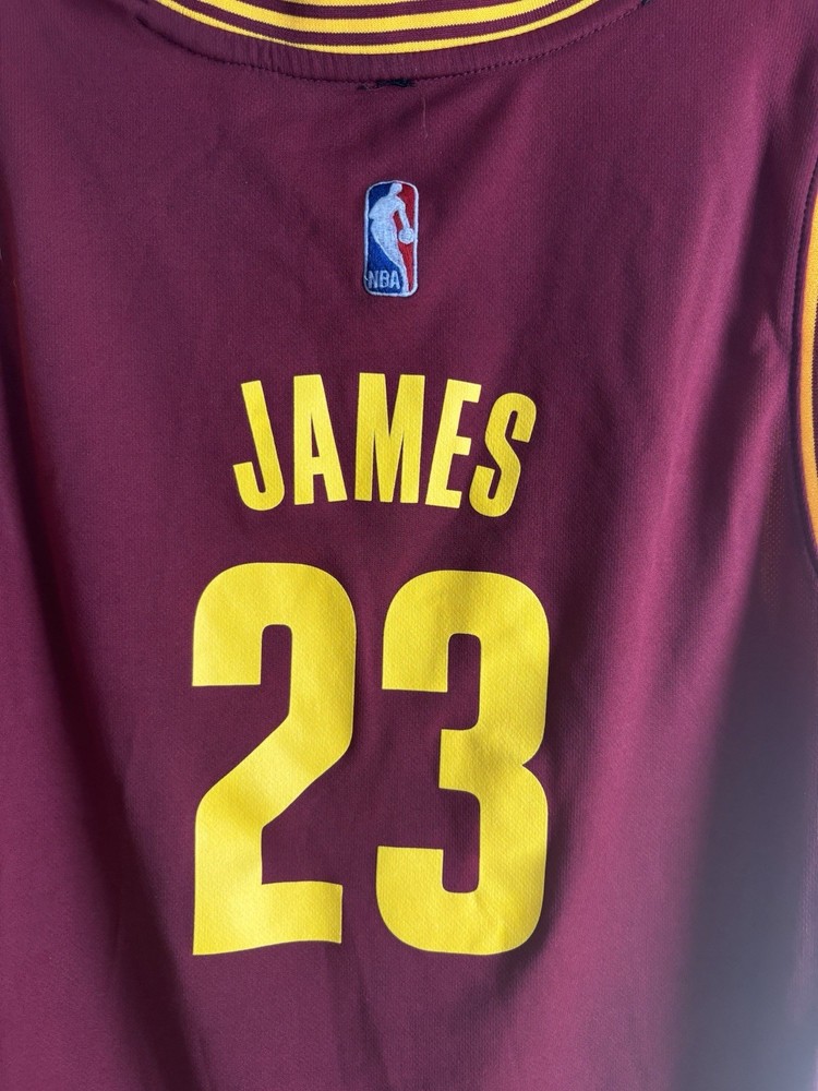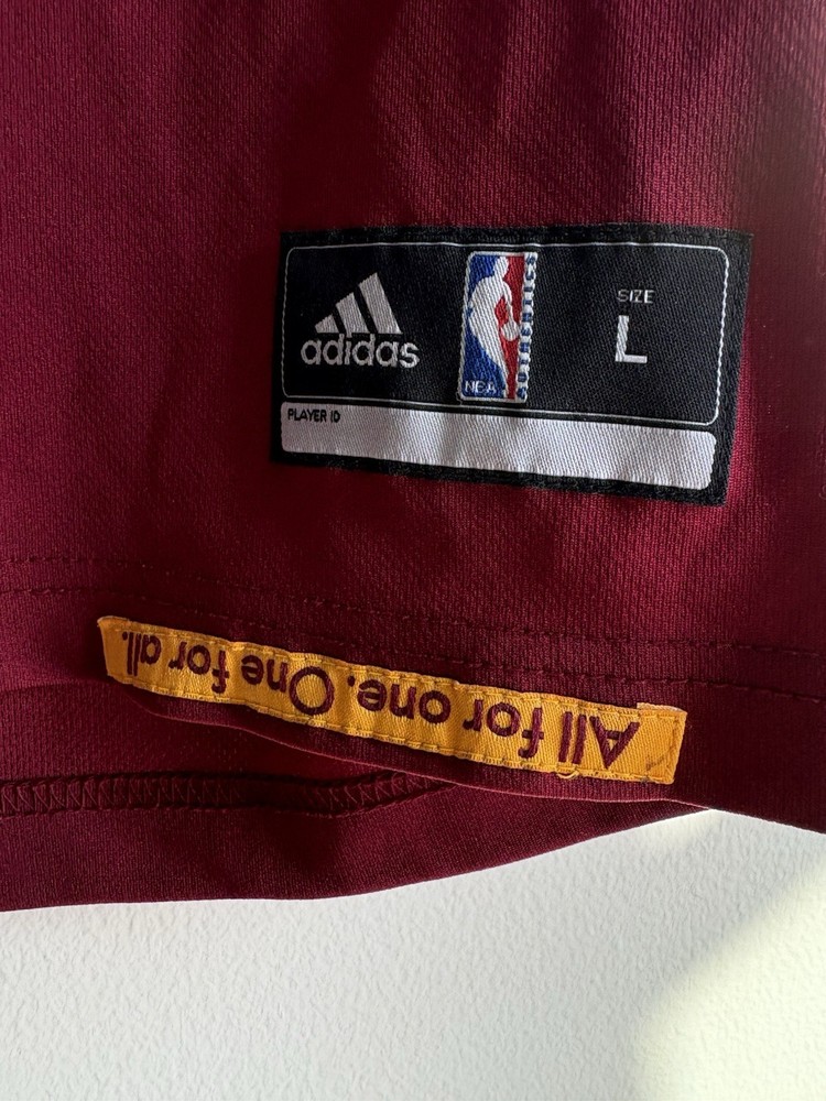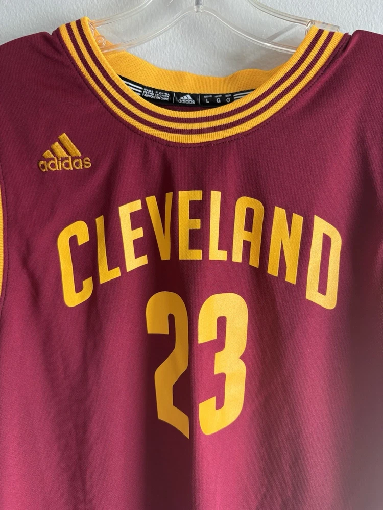 This product is a LeBron James Cleveland Cavaliers #23 adidas Jersey in wine color, size L. It is officially licensed by the National Basketball Association (NBA) and features the player's name and team logo, making it the perfect fan apparel for any basketball enthusiast. The swingman jersey design is a must-have for men who want to show their support for LeBron James and the Cleveland Cavaliers during the regular season. With its high-quality construction and iconic design, this jersey is sure to be a standout piece in any sports memorabilia collection.