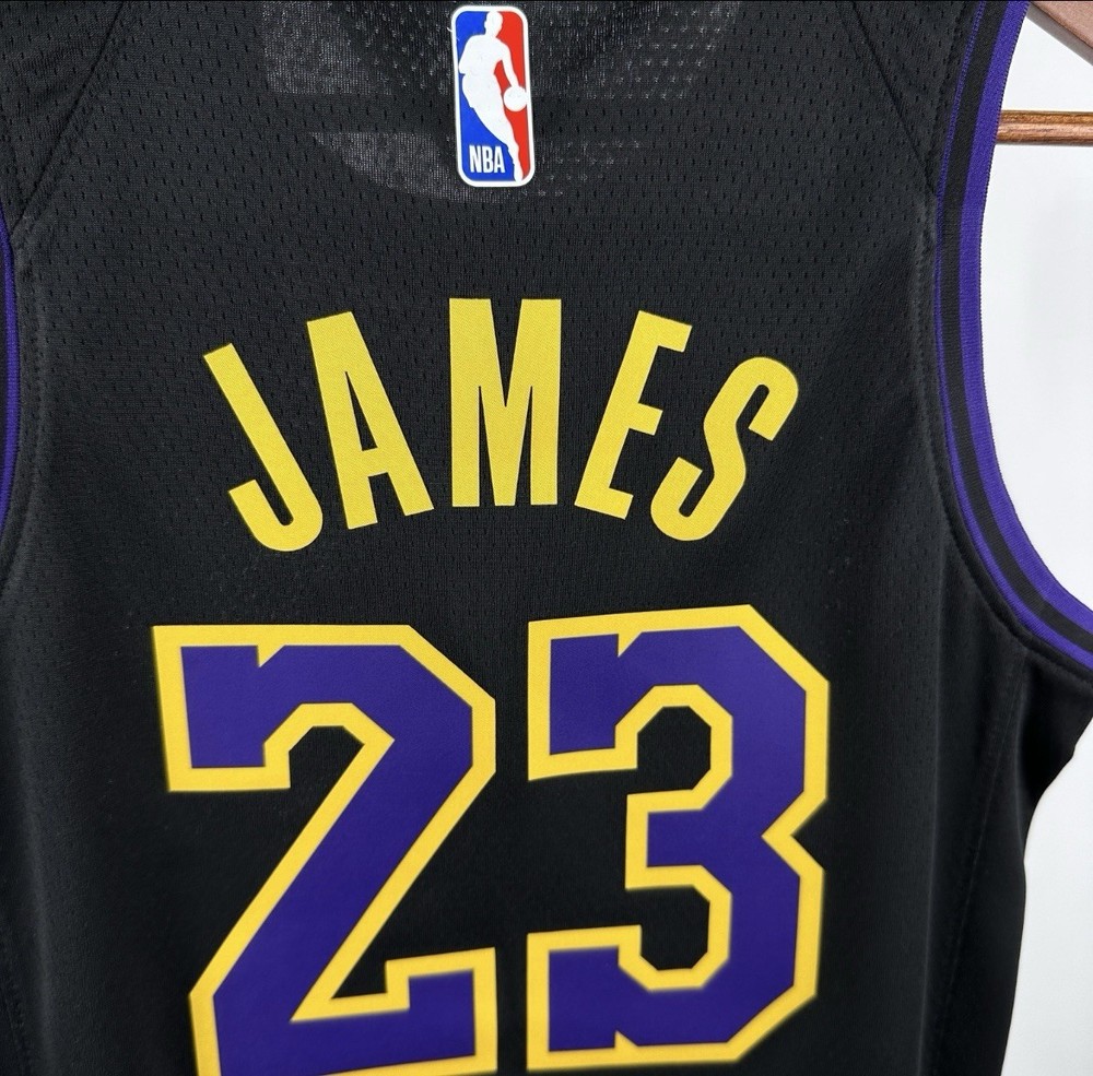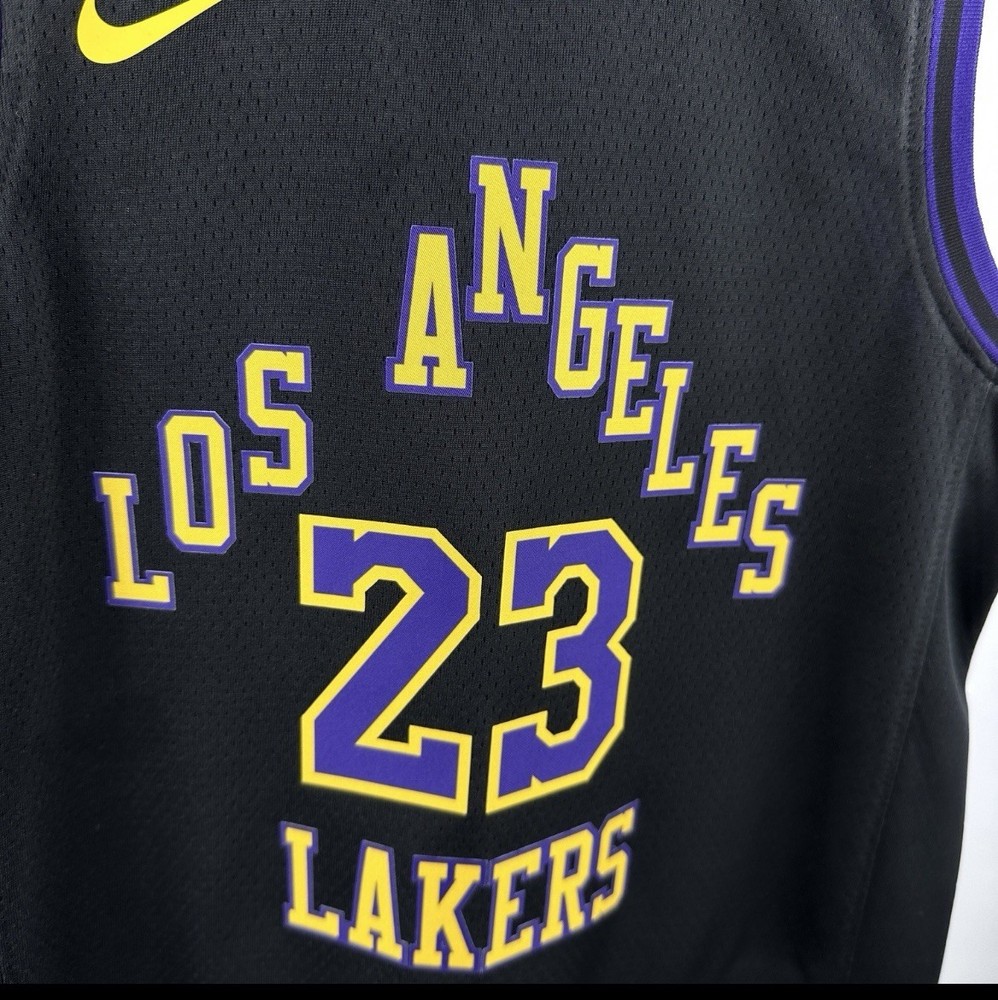 The LeBron James Los Angeles Lakers Nike 2025/26 City Edition Swingman Jersey is an officially licensed NBA apparel featuring the iconic number 23 worn by the basketball legend. Made by Nike, the jersey is designed for men in size L, with a sleek black color representing the team. This jersey is perfect for fans of the Los Angeles Lakers and LeBron James, who want to show their support in style during the regular NBA season. With its high-quality materials and design, this jersey is a must-have for any basketball enthusiast looking to represent their favorite team and player on and off the court.