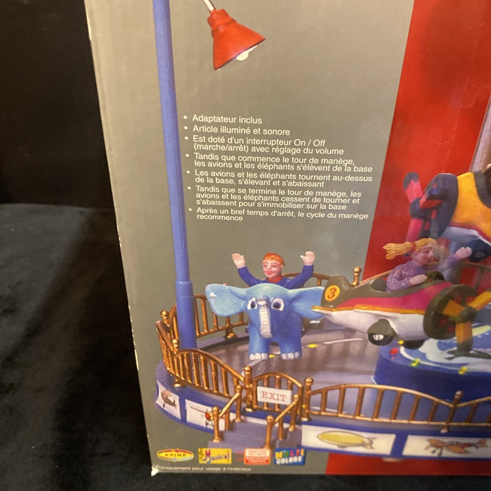 The LEMAX Village Collection Carnival-Junior Flight School is a colorful and detailed collectible from the 2000s. Made with mixed materials, this piece captures the whimsical charm of a junior flight school within a carnival setting. While it does not come with a power cord, it can still be a lovely addition to any holiday or seasonal display, bringing a touch of nostalgia and imagination to the collection. Missing the power cord, but in good cosmetic condition comes with original box and original Styrofoam packaging material Sold as is