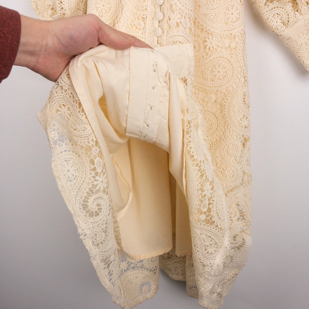 Item Description : Women's Lea Collection Dress Notes & Features : Delicate paisley lace crotchet Button front Zip back Zip up sleeves Victorian style Elegant Size : Adult Small Measurements : Please see photos. If a measurement is missing, ask and we will get it for you. Condition : Good pre-owned condition. Flaws : None found. Shipping : We always ship via the USPS with a tracking number ASAP, Monday-Saturday, and do our best to take care of you and the item at ALL times. Please see the Shipping, returns, and payments section for all available shipping options and prices. Packaging : The item is packaged/shipped in a sealed plastic bag inside of a sealed poly bag mailer. Storage : All items are stored in a smoke free home. Any questions? Please ask; we are happy to answer. Thank you for looking!