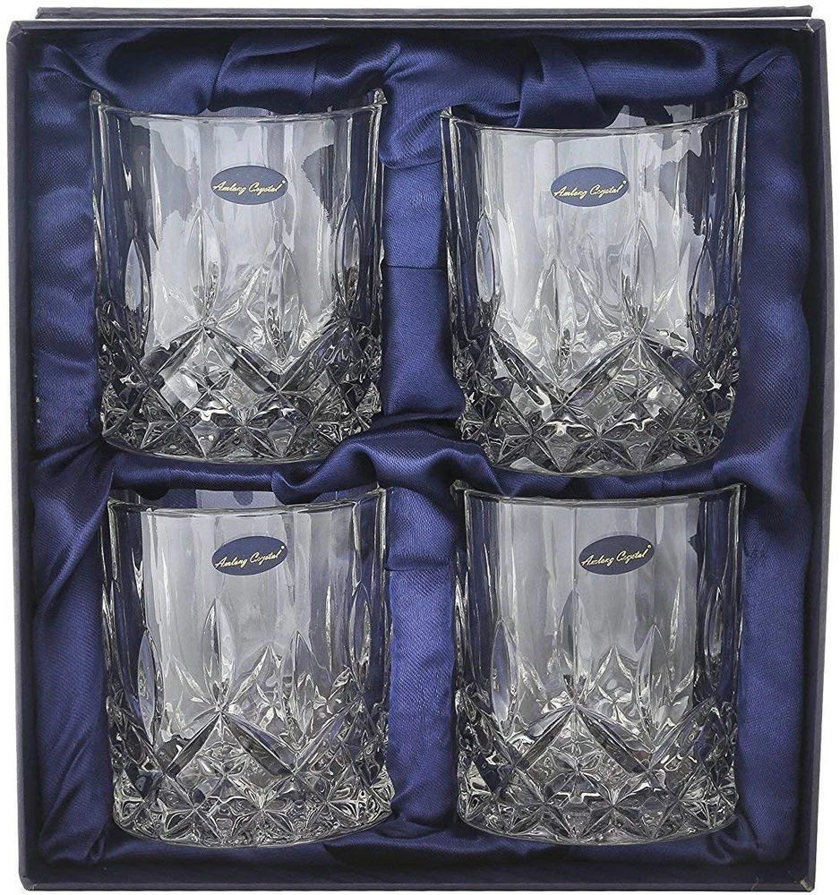 With a cut that is as easy on the eye as it is to grip, these glasses are the perfect companion to your evening. Crafted of quality lead free crystal material Perfect for serving scotch, whiskey or mixed drinks Size: 3.24" x 3.74" high, 9 ounce capacity Comes in inscribed gift box An exceptional value and an excellent gift for any occasion