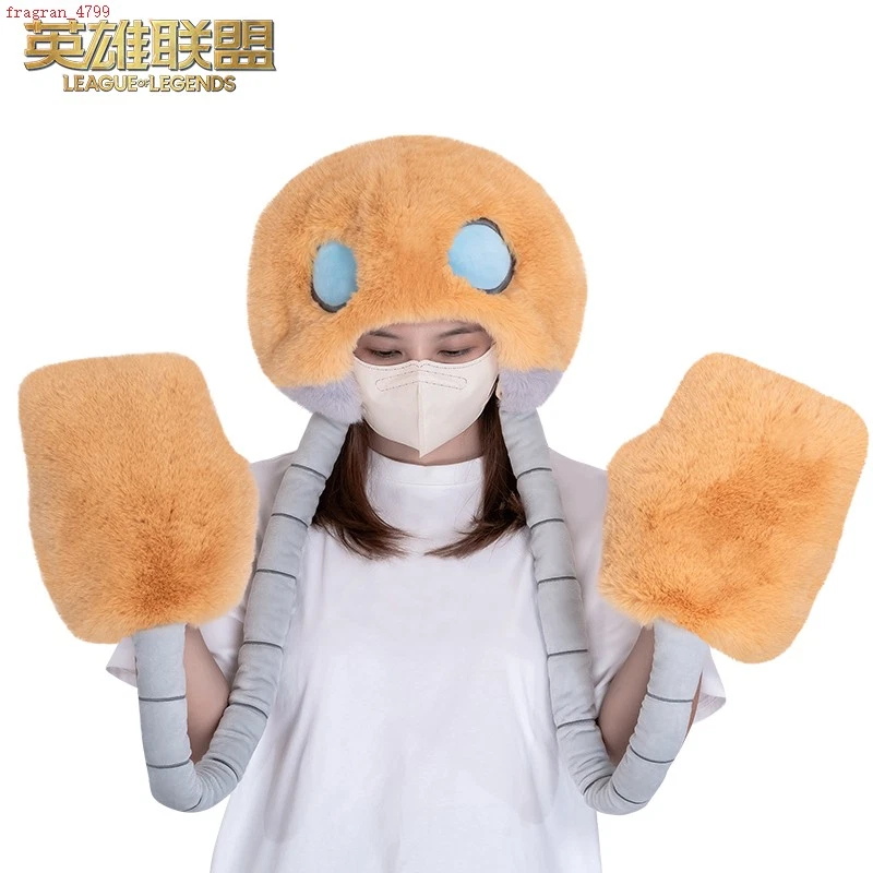 League of Legends Official Gnar Blitzcrank Plush Hat Movable Ear Cap With Glove