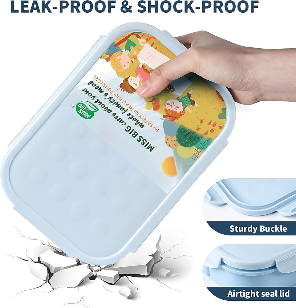 Lunch Box Kids,Ideal Leakproof Lunch Box,Lunch Containers No BPAs and Chemical & Fridge Safe(1150ml Blue) Item Description About this item LEAK-PROOF BENTO BOX – MISS BIG lunch box kids features excellent leak-proof seal, keeping lunch fresh and mess-free. Ideal for school, picnics, or days at the park, this bento box for kids includes four kid-friendly latches that are easy for small hands to open and close. Whether packing snacks or a full meal, each MISS BIG lunch box kids comes with a fork to meet your dining needs. Its compact design fits easily into a backpack, making it perfect for busy school mornings, work lunches, or outdoor activities with the family IDEAL BENTO BOX FOR KIDS – MISS BIG lunch containers are upgraded with 3 practical compartments, perfectly for a kid even adults’ appetite to encourage a healthy and balanced meal. Independent practical compartments can store more delicious nutrient food, no more worries about kids can't enjoy their meal at school or outside.This lunch box kids is just for your kid's health.If you are looking for a bento box for kids,this would be your choice MICROWAVE & DISHWASHER SAFE LUNCH BOX – MISS BIG bento lunch box is very user friendly.Remove the lid while reheating food in the microwave and cleans up easily in the dishwasher.MISS BIG lunch box is dishwasher, microwave and freezer safe, providing great convenience and flexibility for your family. We hope that MISS BIG bento box for kids or adults will become a good helper for your family life SAFETY LUNCH BOX KIDS – MISS BIG kids lunch box containers have all passed CPC Safety Testing. Nature-friendly and free from BPAs or chemical dyes, these bento boxes are made of food-grade PP, ensuring they are healthy and safe for kids and adults alike. The material of this snack box container resists stains, making it easy to clean after daily use. Designed for practicality and sustainability, this bento lunch box is ideal for your everyday meals and is a reliable reusable bento box for long-term use PORTABLE KIDS LUNCH BOX – MISS BIG bento box for kids features a lightweight and durable design. The perfectly sized bento lunch box for kids fits seamlessly into your bag, making it ideal for school lunches, family outings, or weekend adventures. You can carry these lunch boxes for kids with confidence, knowing the leak-proof design keeps food fresh and secure. Whether for school, a picnic, or an outdoor trip, this reusable bento box adult is a practical choice for daily use, blending convenience with functionality DESIGNED FOR KIDS & ADULTS – MISS BIG lunch box come in 2 sizes,and its reasonable volume design allows it to accommodate enough food for both kids & adults.The medium size of the kids lunch box is 8.66 * 5.9 * 2.2 inches,suitable for a child’s appetite (ideal for kid's ages 3+).The large size of the bento box adult is 9.05 * 6.30 * 3.15 inches, The large size adult bento box are deeper,ideal for adults daily use.MISS BIG bento box is not only an ideal lunch box kids, but also a great lunch containers for adults TRANSPARENCY PLAN – MISS BIG kids lunch box containers is verified by Transparency. You can also verify the authenticity of your buying and learn more by using the AMAZON shopping APP to scan the Transparency barcode on the product’s packaging. MISS BIG is devoted to providing bento box excellence that delights all ages. Hope you can enjoy this kids lunch box containers. Recommended Age Grade 36 month+ Show more Payment Fast and Free Shipping Shipping safe payment via ebay . Return 30 Day's returns