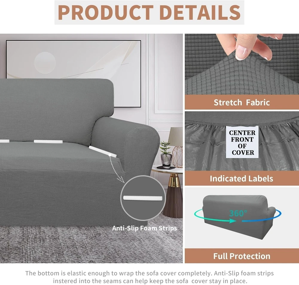 Leakproof Couch Cover in Grey - Ideal Furniture Protector for Pets & Kids ‹ › ‹ › ‹ › ‹ › ‹ › ‹ › ‹ › ‹ › Leakproof Couch Cover in Grey Ideal Furniture Protector for Pets & Kids Features: 100% Waterproof Fabric: Crafted with a dual waterproof feature; the top fabric is treated for waterproofing while the back is coated with a TPU film for an exceptional leakproof barrier. Soft & Stretchable: Made from 20% spandex and 80% polyester, this sofa cover offers a high-quality, soft touch that is perfect for areas with children and pets. Perfect Fit: Designed to fit sofas with a seat width of 60" - 81". Check the detailed measurement in the size picture and ensure your sofa fits; an elastic bottom provides comprehensive protection against stains, spills, and daily wear. Easy Installation: Equipped with seamed labels for effortless installation, simply tuck excess fabric into seams for a snug fit. Foam strips are included to help the cover stay perfectly in place. Care Instructions: Machine washable in cold water. Avoid bleach and ironing. For longevity, hang dry to protect the waterproof layer from damage due to high temperatures. Why Choose Our Leakproof Couch Cover? Transform your living space with our Leakproof Couch Cover in Grey, designed to bring peace of mind to homes bustling with kids and pets. With a beautiful, modern appearance, this cover not only looks good but provides the ultimate protection for your furniture. Its 100% waterproof feature ensures that accidental spills and sneaky pet messes are no longer a worry. With an easy installation process and a snug fit that doesn’t slip, you can enjoy the elegance of your sofa while prolonging its life. Invest in a cover that combines style with functionality, making your home cleaner and more comfortable. Order your Leakproof Couch Cover today and embrace a home where comfort meets protection! Shipping Free & Fast Shipping - We offer free shipping to most of the USA with a normal delivery time of 3-7 days. However, due to the current situation, additional delivery time (up to 3 weeks) may be required for some items. Alternative Carriers - We may use alternative carriers (e.g. USPS, FedEx, UPS, etc.) to ensure your package arrives safely and on time. Due to the use of multiple carriers, we are unable to provide a tracking number automatically. Handling Time - Orders are processed and shipped within 1-2 business days of receiving cleared payment. Shipping Restrictions - Shipping to Alaska, Hawaii, Puerto Rico, Guam, and other US territories may incur shipping charges or delivery restrictions. Please contact us before ordering, or your order can be refunded/cancelled. State Restrictions - There may be restrictions based on your state of purchase. For example, certain items may not be shipped to California due to state regulations. Contact for Tracking Updates - If you require tracking updates or have any concerns about the delivery of your order, please feel free to contact us, and we will be happy to assist you. Return 30-Day Hassle-Free Returns - We want you to be completely satisfied with your purchase. If you are not, you can return the item within 30 days of receiving it for a full refund or exchange. Easy Return Process - To start a return, simply contact us and we will provide you with a prepaid return shipping label and detailed instructions. Restocking Fee - There are no restocking fees for returns. However, the buyer is responsible for return shipping costs if the return is not due to a seller's error. Refund Processing Time - Refunds will be processed within 5 business days of receiving the returned item in its original condition. Payment We accept all major credit cards, PayPal, and Apple Pay for your convenience. Your payment information is secure and encrypted to ensure a safe and seamless transaction. Please complete your payment within 3 days of purchase to avoid any delays in shipping. Feedback Your feedback is extremely important to us. We strive to provide the best products and customer service possible. If you are satisfied with your purchase, please take a moment to leave us a positive review. If you have any concerns or issues with your order, please contact us before leaving negative feedback. We are committed to resolving any problems and ensuring your satisfaction. Contact Us If you have any questions or concerns, please feel free to reach out to our customer support team. You can contact us through the eBay messaging system. We are available Monday to Friday, 9:00 am to 5:00 pm EST, and we will do our best to respond to your inquiry within 24 hours. Buy it now and enjoy a pleasant shopping experience! UPC: Not Set Unit Quantity: 1 Suitable For: 2-Seater Sofa,3-Seater Sofa,4-Seater Sofa,Armchair,Chair,Recliner,Sofa Material: Polyester,Spandex,TPU Film Compatible Brand: Not Set Compatible Model: Universal Room: Bedroom,Home Office/Study,Living Room Features: Stretch,Waterproof,Leakproof,Elastic Bottom,Easy Installation Theme: Not Set Care Instructions: Do Not Bleach,Do Not Iron,Machine Wash,Machine Wash Cold,Hang Dry Brand: Unbranded Color: Grey Product Line: Not Set Item Width: Not Set Item Length: Not Set Item Height: Not Set Model: Not Set Item Weight: 2 lb MPN: Not Set Type: Slipcover Style: Casual Pattern: Solid Upholstery Fabric: Jacquard Country/Region of Manufacture: Not Set Era: 21st Century (2000-Now) Manufacturer Warranty: Not Set Unit Type: Unit Personalized: Not Set Original/Reproduction: Not Set