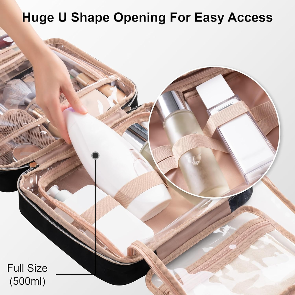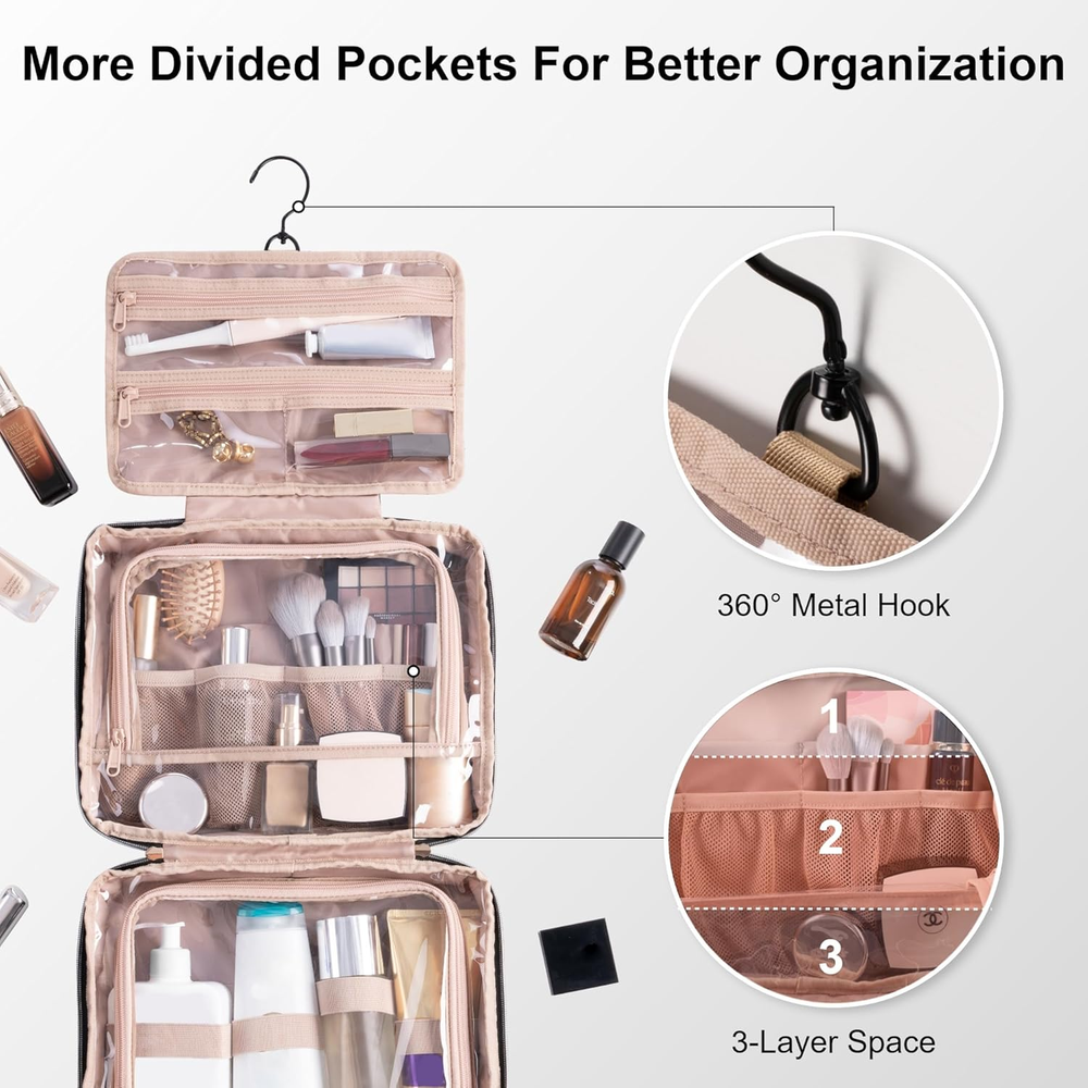 This hanging toiletry bag is a game-changer for travel! The leakproof compartments keep everything secure, and the spacious design fits all my essentials without the mess. Love how it hangs for easy access—perfect for staying organized on the go. The quality is great, and it’s surprisingly lightweight. A must-have for any trip!