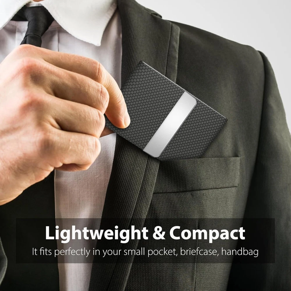 Store New Arrivals Add to Favorite View Feedback Contact Leather Business Card Holder Metal Slim Pocket Wallet with Magnetic Closure Description Item model number Black Carbon Closure Magnetic Style Carbon Fiber Color Black Carbon Pattern Checkered Material Faux Leather, Stainless Steel Material Type Faux Leather, Stainless Steel Manufacturer Part Number -PU-Business-Card-Holder-BC Item Weight 2.08 ounces Product Dimensions 0.5 x 2.4 x 3.7 inches QUICK ACCESS: Built-in magnetic closure, you can easily access any of the cards stored in there. ULTRA SLIM & COMPACT: Hold about 15-25 business cards (according to the thickness of your cards) or 4-8 credit cards. Minimalist enough that you can fits perfectly in your small pocket, briefcase, handbag. PREMIUM MATERIALS: High quality PU leather combined with stainless steel creates a unique style card case. RFID BLOCKING: RFID secure design protect your cards from unwanted wireless communication. BEST GIFT: It can be a great present for yourself or the one you love. Please feel free to contact us if you have any question about our business card case. Product Description The video showcases the product in use. The video guides you through product setup. The video compares multiple products. The video shows the product being unpacked. 1 PROFESSIONAL & BUSINESS 2 SLIM & ELEGANT 3 COMPACT & PORTABLE MaxGear Professional Business Card Case ABOUT US We offer the best prices around on high quality products. Our E-store includes media such as books, movies, music and games while offering electronics, toys, sporting apparel, clothing, tools, general home, garden items and more. SHIPPING We are always working hard to ensure your package arrives as soon as possible. Please understand that some factors like weather, high postal traffic, and the performance of shipping companies are outside of our control. We offer free shipping to the lower 48 states and ship within 2 business days of payment, usually sooner. We do not accept P.O. Boxes. Please provide a physical address. For shipping outside of the continental USA, we only use eBay's Global Shipping Program.The item is shipped to KY and then sent to the rest of the world. International customers are responsible for all duties and taxes. Continue to check out in order to calculate costs for shipping the item to your country. Messages regarding eBay's Global Shipping Program MUST be directed at eBay EXCLUSIVELY. RETURNS We offer a 30-Day Return Policy on items which you are not completely satisfied with. You have the option for a full-refund or an exchange of the item. No returns are available on items shipped outside of the USA. PAYMENT We accept PayPal. CONTACT US This page content is yet to come Please ad us to your favorite seller and visit again later Thank You CUSTOMER SATISFACTION We try our very best to make sure every customer is completely satisfied. If there's a problem, message us! We're happy to help. WE ACCEPT Copyright © 2021 AutoDS. | All Rights Reserved