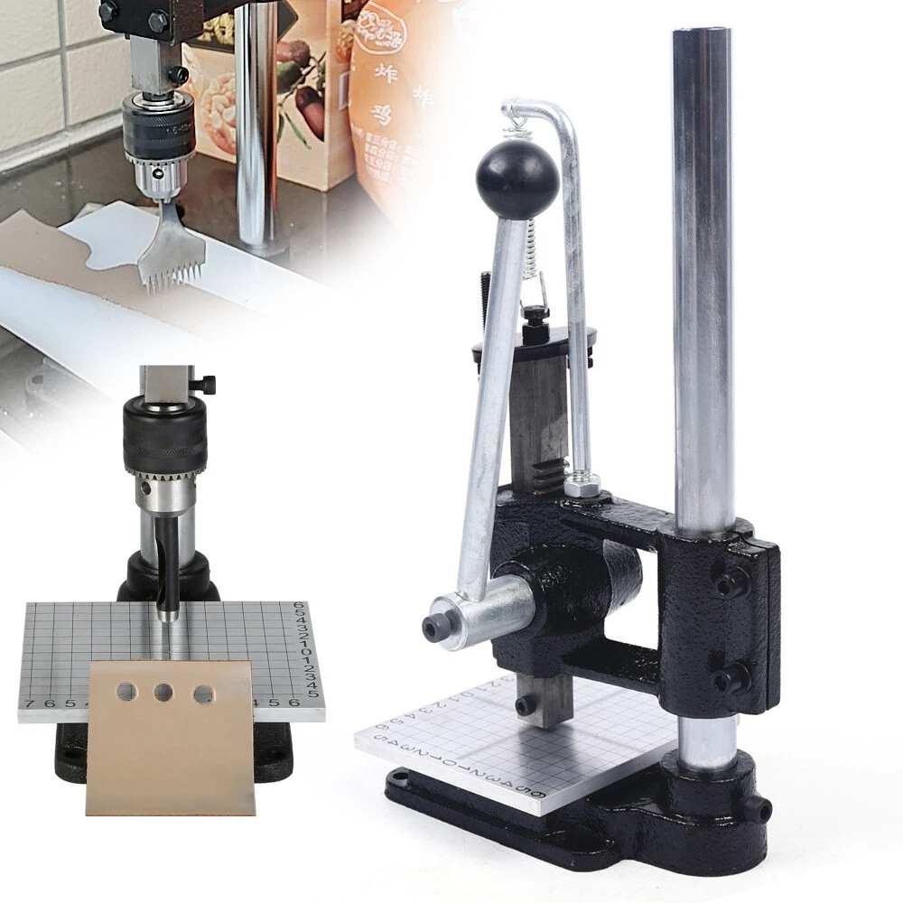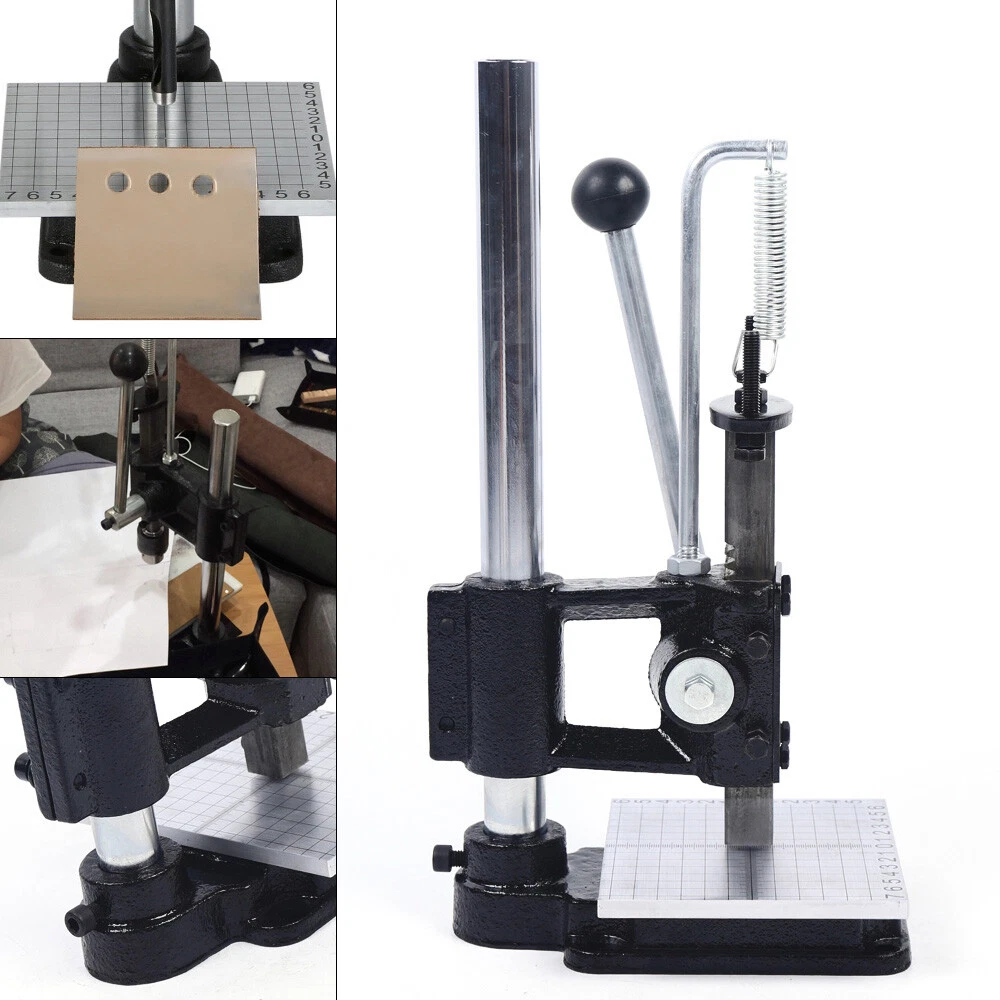 Package: Standard version 1*Machine 2*Spanner 1*Drill chuck Increased version 1*Machine 2*Spanner 1*Drill chuck 1*PP plate 1*Aluminum plate with scale Premium version 1 x Machine 1 x Drill chuck 2 x Spanner 1 x Manual 1 x PP plate 4PC Leather prong punch (1tooth+2tooth+4tooth+6tooth) 7PC Circular punch (1.5mm+2mm+2.5mm+3mm+3.5mm+4mm+4.5mm+6mm) welcome to my store! Description DIY Leather Imprinting Machine Hole Punching Bronzing Tool Cutting Stitching USA Description: Toothed rack width: 22mm Die hole diameter: 11mm(M12 screw thread) Bottom plate big round hole diameter (feeding hole): 27mm Drill chuck clamping range: 1.5-13mm Machine pillar lifting height: 0-16CM Detachable scale bottom plate: 13*15CM Max machine pressure( downforce): less or equal to 160 Kg. Features: 1. Low operating noise 2. With labor-saving spring 3. Safe operation, machine stamping instead of beating prongs with a hammer 3. With different accessories to achieve multi-function 4. Quick installation and easy operation 5. Max 160Kg of pressure (down force) to good stamping effect Applications: This machine is mainly aimed at leather handcraft workers, used for punching, pronging and stamping process, improving efficiency and working quality. Package: Standard version 1*Machine 2*Spanner 1*Drill chuck Increased version 1*Machine 2*Spanner 1*Drill chuck 1*PP plate 1*Aluminum plate with scale Premium version 1 x Machine 1 x Drill chuck 2 x Spanner 1 x Manual 1 x PP plate 4PC Leather prong punch (1tooth+2tooth+4tooth+6tooth) 7PC Circular punch (1.5mm+2mm+2.5mm+3mm+3.5mm+4mm+4.5mm+6mm) Payment Delivery details Terms of sales About us Contact us Payment We accept ebay payment 。 Fees such as import duties, taxes are not included in the item price or shipping costs. These charges are the buyer's responsibility. Delivery details Shipping: 2-9 working days to: USA Terms of sales We maintain high standards of excellence and strive for hundred percent customer satisfaction. Feedback is very important to us. We hope that you contact us immediately before you give neutral or negative feedback, so that we can address your concerns. It is impossible to address issues if we do not know about them! About us Your satis faction is our ultimate goal. We work hard to earn your trust and future business. Our certified technicians have tested each item before shipping. The unit comes with 1 year limited warranty on all manufacturing defects. a) If you receive a defective item, you may return it or ask for a discount. Please contact us within 14 days after you receive the package. b) What you returned must be intact and in its original packaging as re? u. Customer is responsible for shipping costs of the returned item. c) We will cover the cost of shipping back t with the shipping rate indicated in the registration page. We will send you a new unit or refund the full payment you paid. Thank you. Contact us Business Hour Business Hour: Monday To Friday: 8:30 AM to 5:00 PM (Beijing China time) Due to time zones, our reply to your questions may not be immediately. But within above working time, we will reply your email within 24 hours. If it's non-workdays, please kindly be patient and wait till Monday. Please contact us with ebay message. Please feel free to contact us if you have any questions. Monday To Friday: 8:30 AM to 5:00 PM (Beijing China time) Due to time zones, our reply to your questions may not be immediately. But within above working time, we will reply your email within 24 hours. If it's non-workdays, please kindly be patient and wait till Monday. Please contact us with ebay message. Please feel free to contact us if you have any questions.