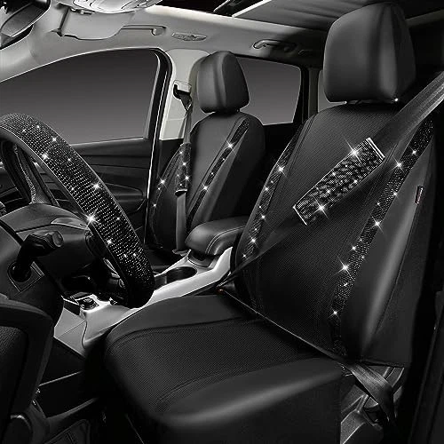 Leather Diamond Bling Seat Covers Sets 11 pcs, Bling Car Accessories Set for