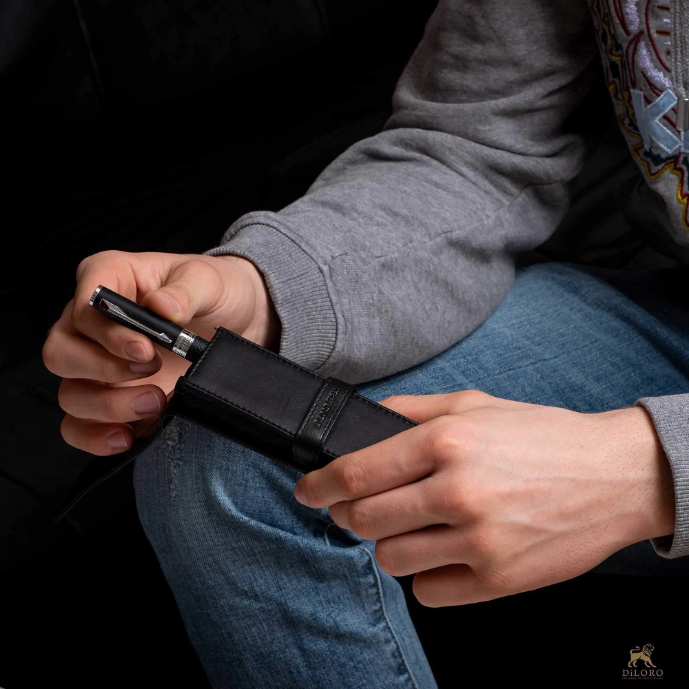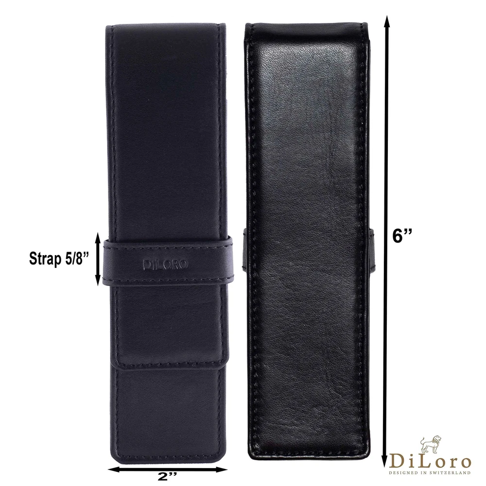 If for any reason you are not 100% happy with our product or service please let us know and our team will make things right Double Pen Holder made out of Full Grain Leather - Securely holds two (2) standard sized fountain pens, ballpoint, rollerball or mechanical pencils. Travel Case - Keep your favorite pen or pencil protected at all time, especially during travel. The center divider will provide additional protection while you're on the move keeping your pens from getting scratched up. Presentation Black Box Packaging- Makes one of the most special presents for Birthdays, Groomsmen, Anniversaries, Father's Day, Christmas and other Special Occasions. Full Grain Genuine Leather - Made with the finest leather that you can feel and smell. SIZE: 6" L x 1 1/2" W x 1" D / 150mm x 40mm x 25mm SKU: 1623-BK