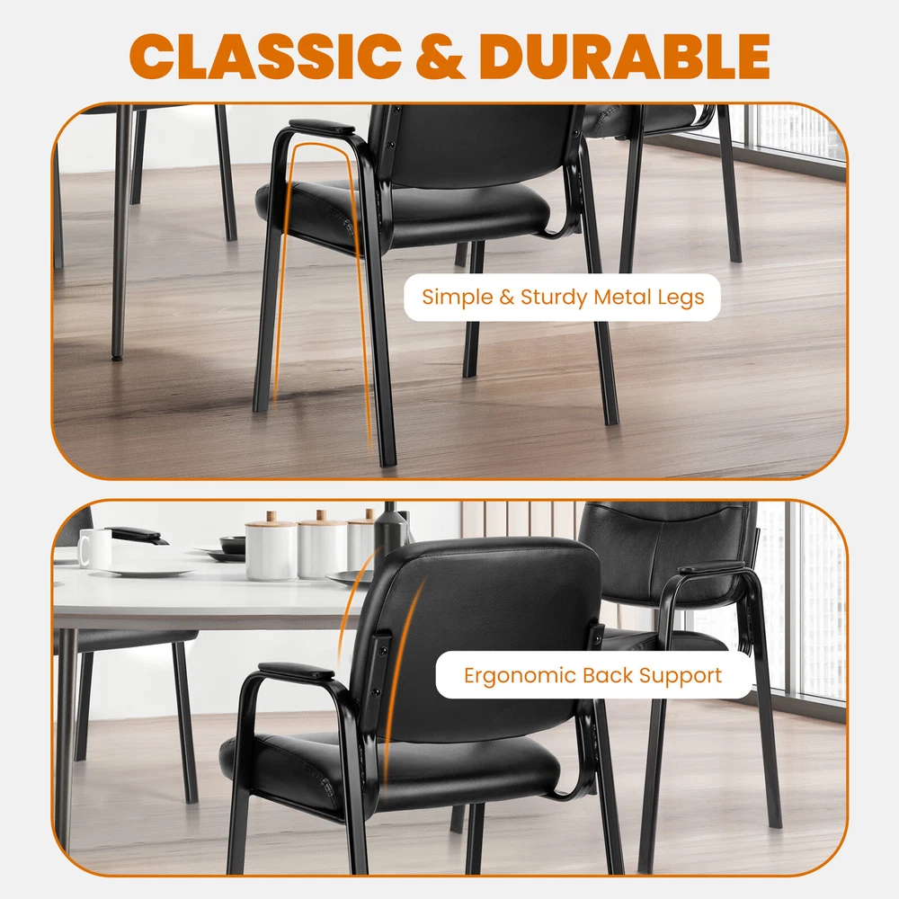 Store Categories Store Categories Bedding Electric Appliances Pet Supplies Table& Desk Chair Dining Chair Leisure Chair Office Chair Leather Chair Bar Chair Folding Chair Outdoor Products Sports Goods Cabinet Kitchen Supplies Tool Storage Supplies Sofa Mirror Other Leather Guest Chair Product Description 【Comfortable Cushion】The cushion of this reception chair is full and thick, will give you a comfortable sitting experience and is not easily deformed. The backrest is wide and full, supportive, supports the back and hips effectively, comfortable to sit, will not press the back and leg nerves, and fully relax the body, making you feel comfortable even after sitting for a long time. 【Sturdy and Stable Chair】This waiting room chair has a wheel-less design. Metal construction frame allows the chair structure is stable, gives the office guest chair a balanced center of gravity, the leather waiting room chair can support up to 300 lbs, not easy to slip, strong safety, durable to have. 【Preferred Leather】The office guest chair is made of high quality PU leather materials for durability, not easy to wear, surface waterproof, corrosion resistant, not easy to change color, skin friendly and non-irritating odor. Can be used indoors and outdoors, easy to clean and long service life. 【Multi-purpose】This classic lobby chair provides you and your guests with comfortable seating and an elegant visual effect, perfect for business receptions. This reception chair is perfect for the office area, such as vreception room, conference rooms, offices, hospital clinics, dining chairs, libraries, in front of the executive desk or around the conference table. Payment Policy Contact Us Payment Policy Pay secure with any major credit card through PayPal and eBay manages payments. For International buyers, Import d u ties, tax and charges are not included in the item price or shipping charge. Contact Us We want you to be satisfied with your purchase. However, if you have any issues regarding your order, we have a dedicated customer service centre who will be delighted to help and resolve any issues that may arise. We strive for 100% customer satisfaction at all times. If you are not satisfied with your purchase or experience with our company, please do not hesitate to contact us. We will do our best to resolve this for you. Please check Business seller information or email through the eBay messaging system. You will need to select the "contact the seller" option (found on your eBay Order). We aim to respond within 24 hours. Our office opening hours are Monday to Friday, 9 am to 5 pm. Copyright © 2023 Dianxiaomi