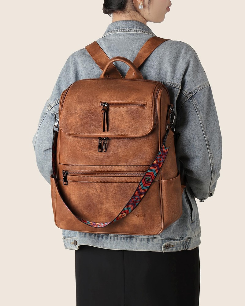 1. Absolutely loving this stylish leather backpack! The dedicated laptop compartment keeps my 15.6" laptop secure while the smooth zipper makes access a breeze. With 12 pockets, everything stays organized—perfect for work, travel, and daily use. The sleek design holds so much without feeling bulky. Highly recommend for any woman needing both function and fashion!