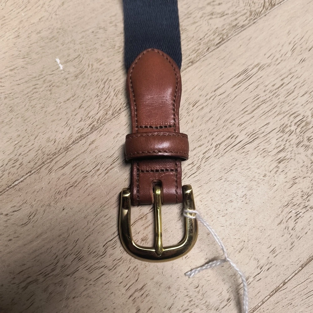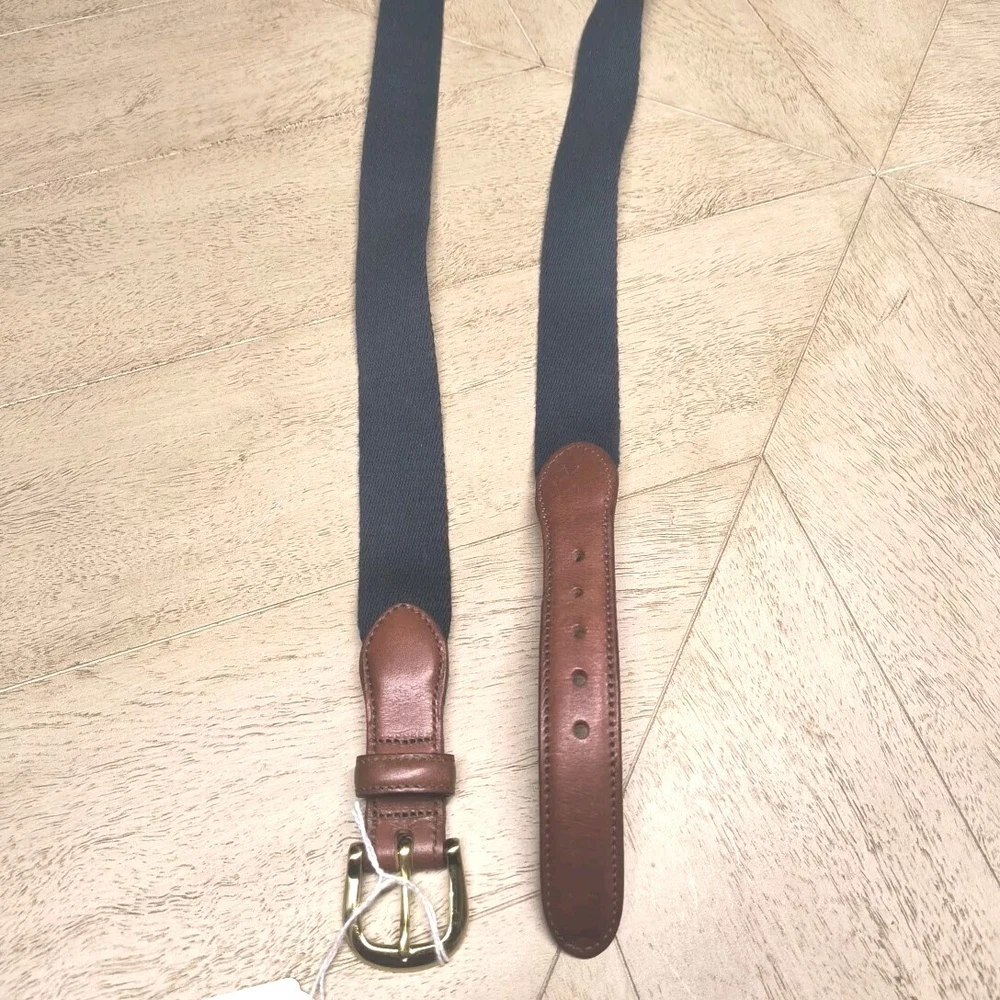 Leather Man Ltd Canvas Belt Size 48 Nautical Solid Brass Buckle Navy USA Classic. New with tags. Handmade in Essex Connecticut.